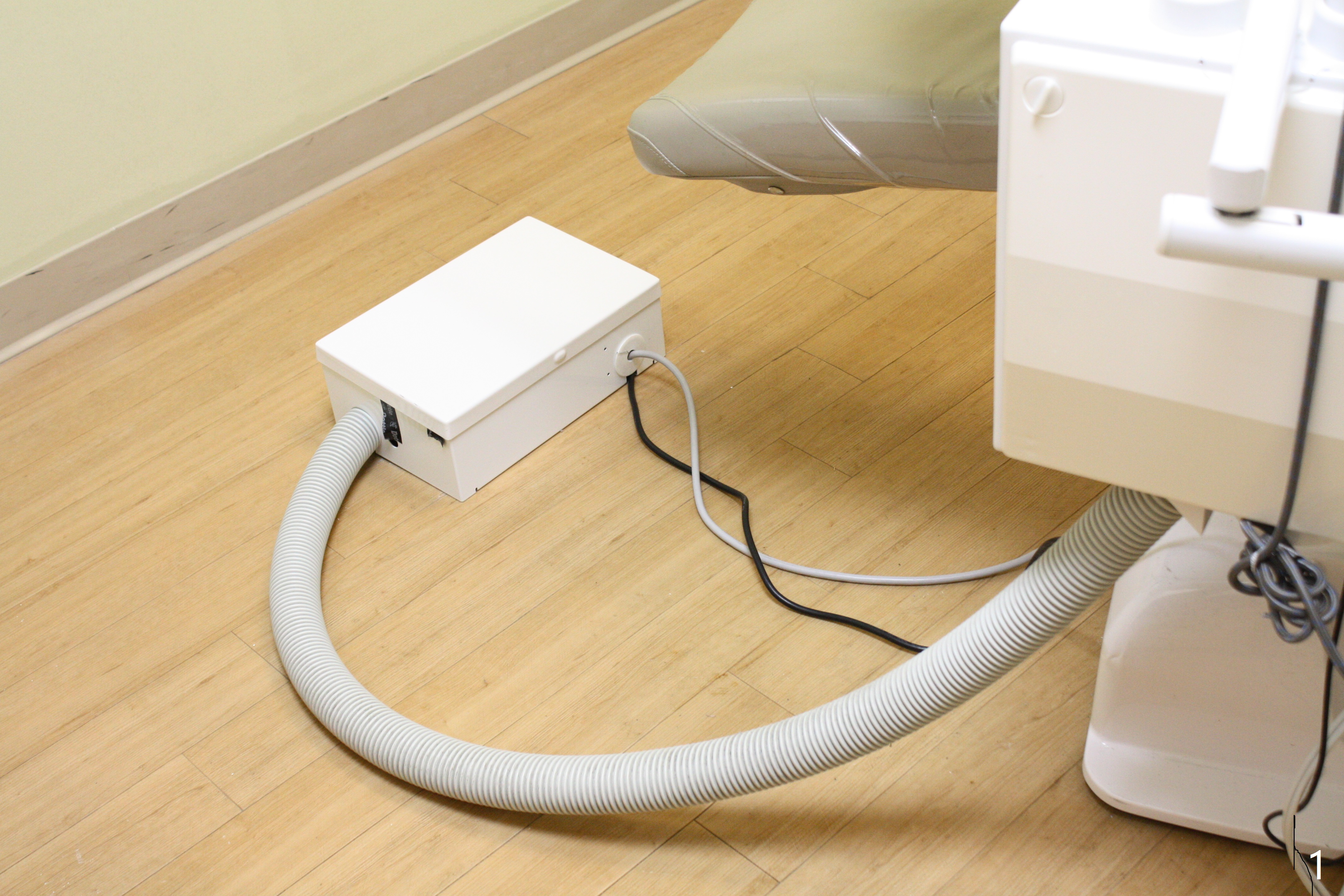 四间治疗室(10平方米),两间为口内,口修(治疗台备用电子转机),两间口外(植牙机)。电器合(图一)事先埋在水泥地下,整洁,容易做卫生。后背橱子有可拉式台面,右边放置电脑。