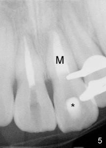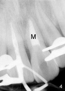 radiograph (Fig.4: M). If an adequate barrier has not been created, rinse the ProRoot MTA root repair material out of the canal and repeat the procedure