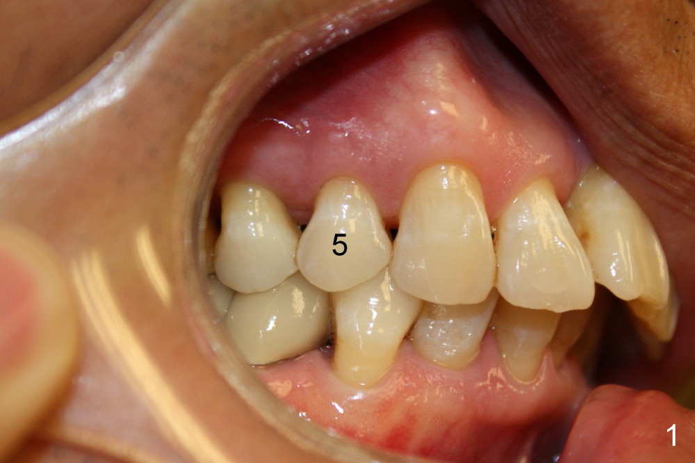 A 56-year-old man fractures the lingual cusp of the upper right 1st premolar (Fig.1,2).