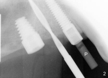 A post guide (Fig.2: P) was inserted to the well of #5 implant as a guide for #4 pilot drill and continually for a drill with larger diameter (Fig. 3 D). Implant placement was a breeze (Fig.4). Two months later, three of the straight abutments (0 degree) were also parallel to each other.