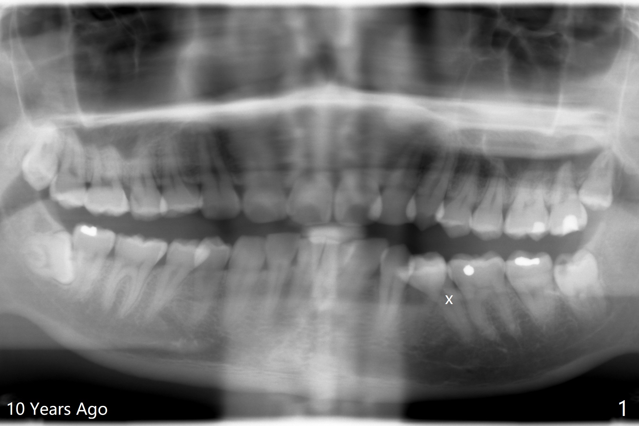 years (Fig.1 x). Severe caries at UR5 makes it easy to decide for
