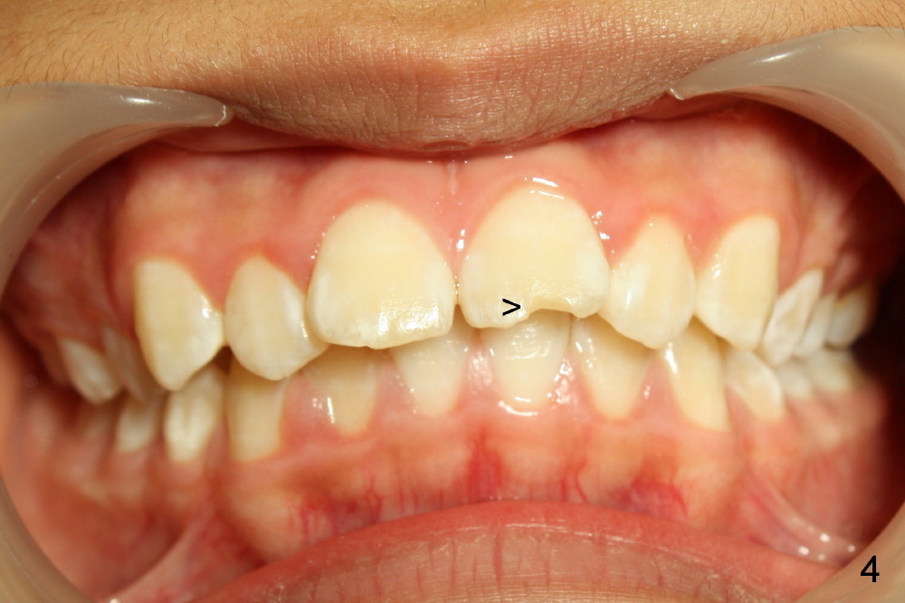 Braces with Extraction for Severe Crowding When Ven (boy) is 12 years old, his top lip looks too out (Fig.1), because his top front teeth are too out (Fig.2,3). When the front teeth are out, they are easily chipped (Fig.4 >). To reposition the top front teeth (arrow(head) in Fig.2,3), two of the top back teeth are extracted and braces are placed (Fig.3,5). The boy looks great 1 year after braces are removed (Fig.1'-5'). Return to Child Dental Care Xin Wei, DDS, PhD, MS 1st edition 11/23/2013, last revision 10/08/2017 |