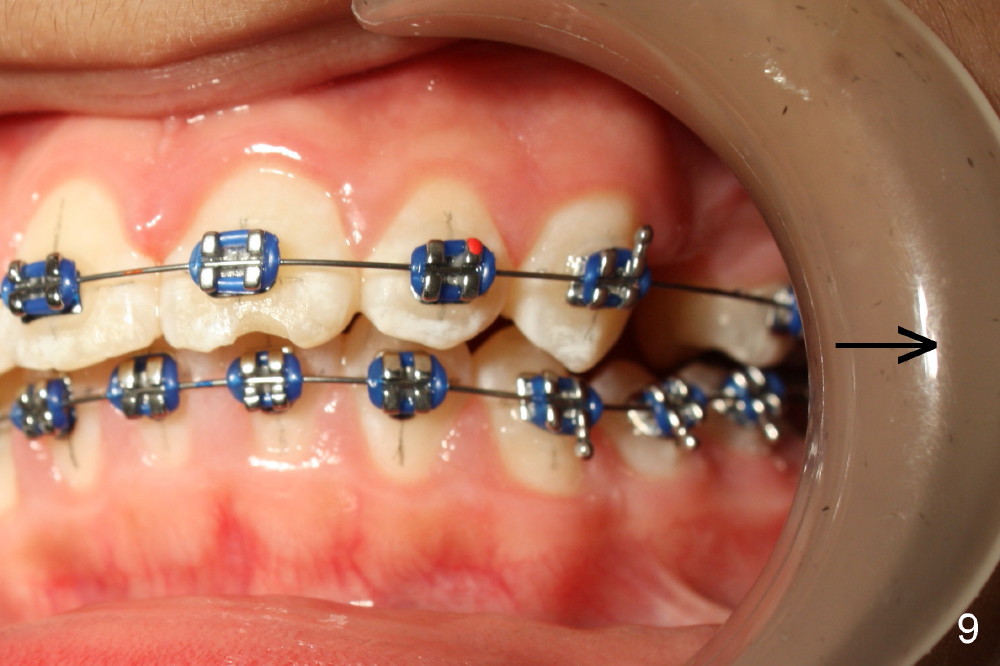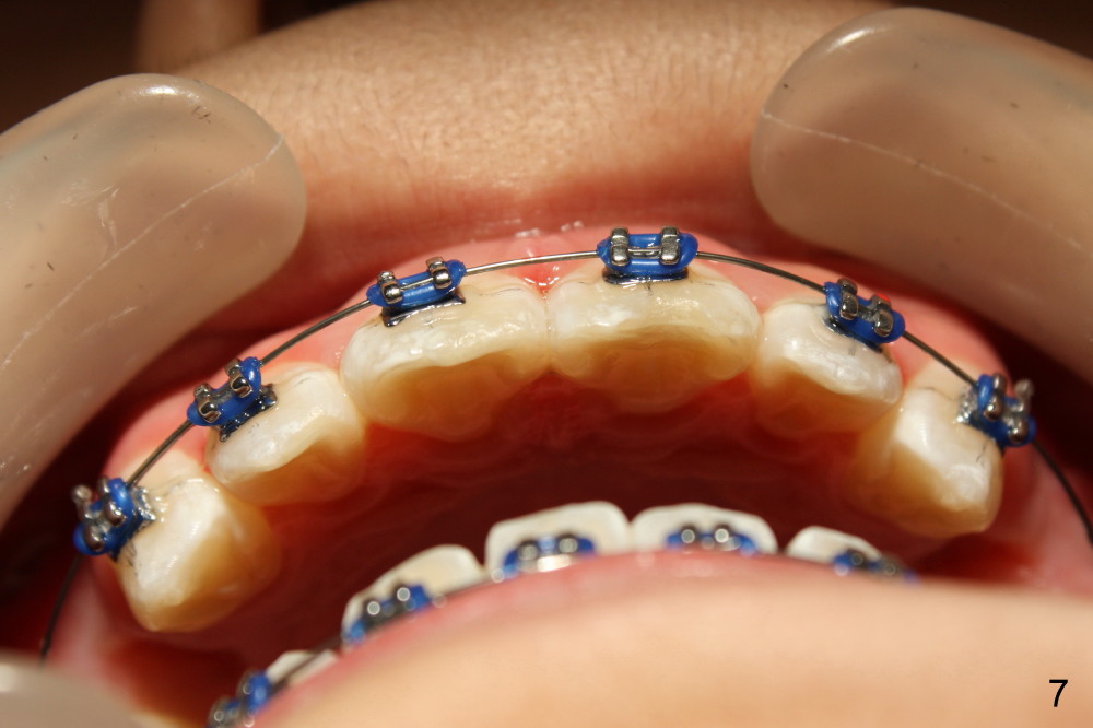 Fig.7-9 are taken 1 month post-bracketing. Alignment of the upper anteriors improves.