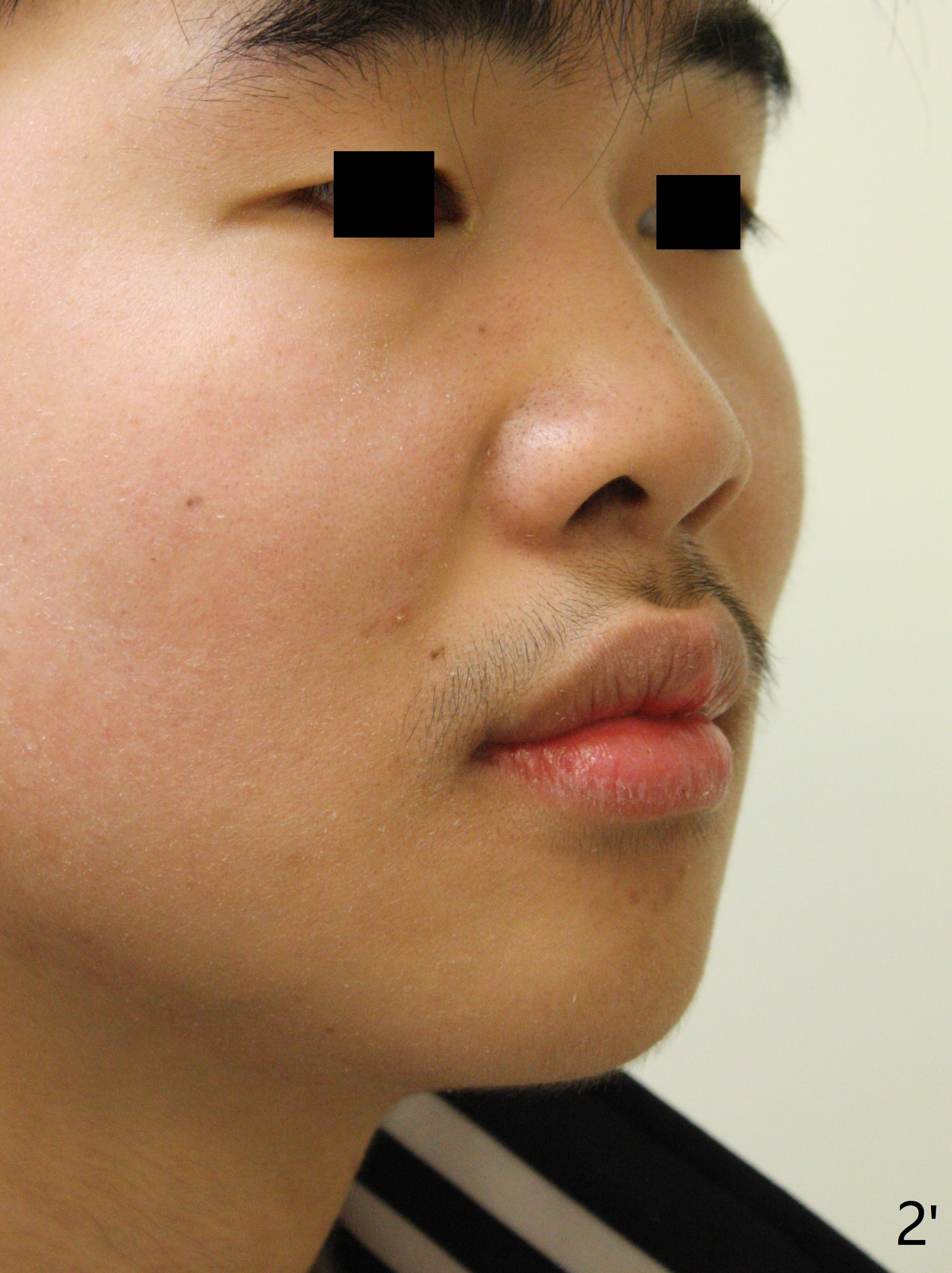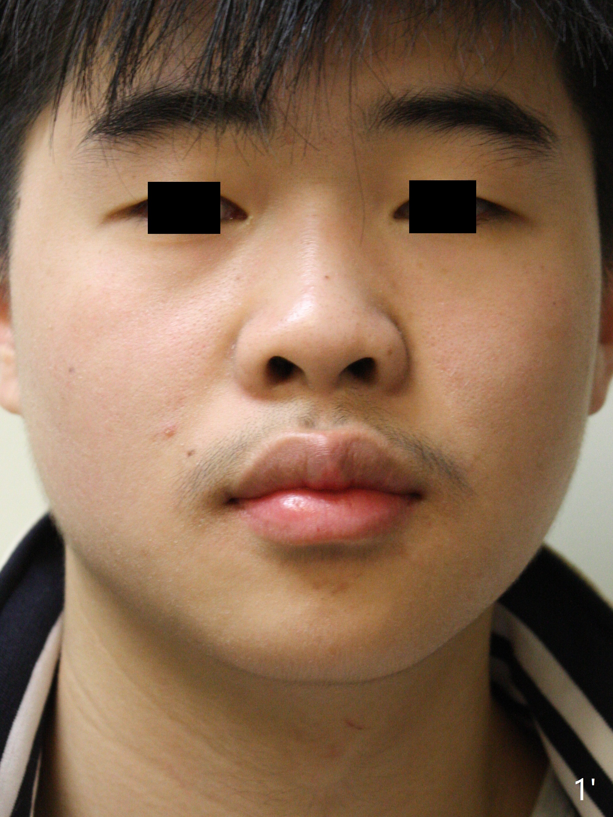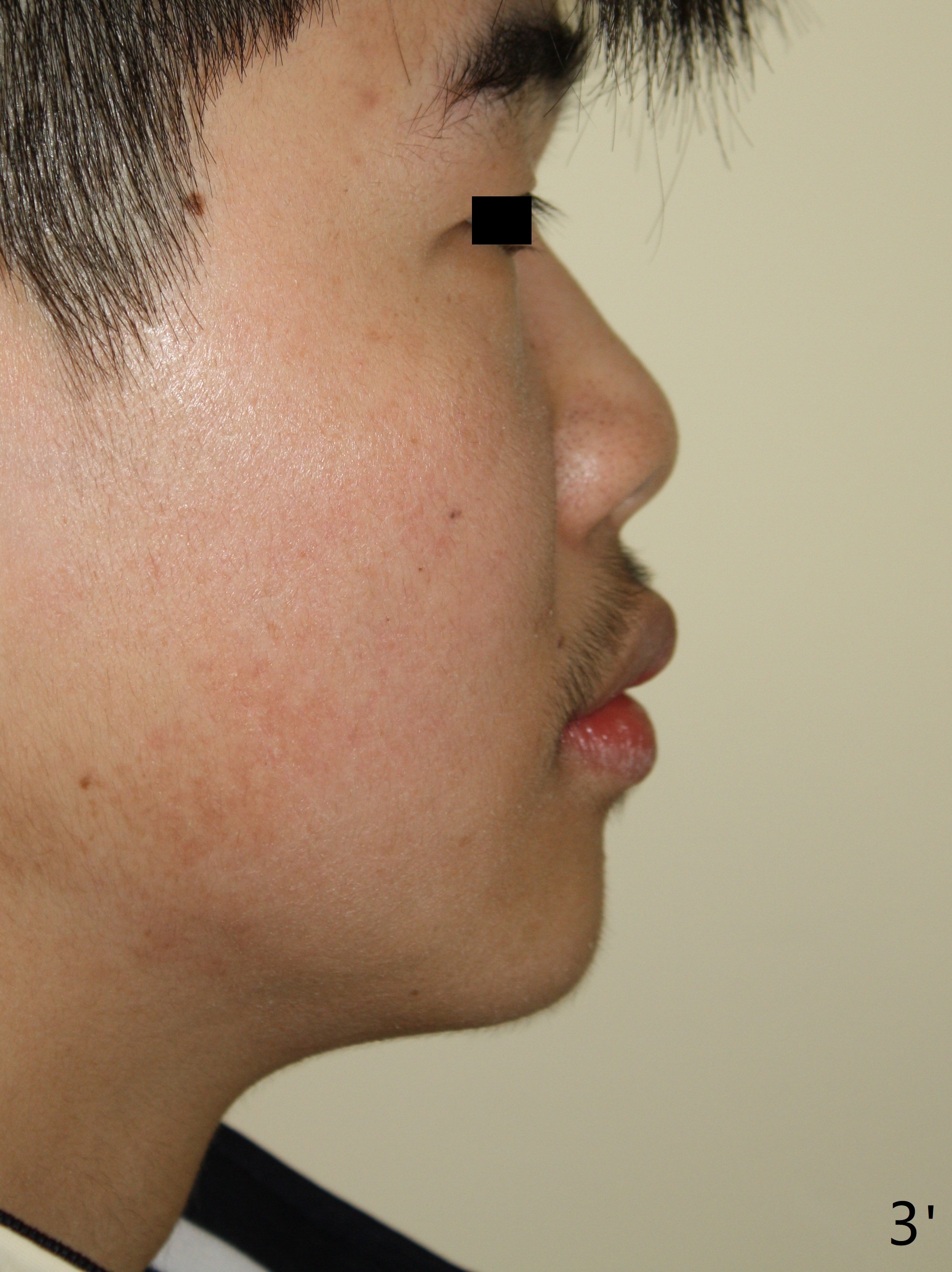 A 15-year-old man wants to improve the facial appearance (Fig.1-6). With extraction orthodontics, the profile and occlusion improve (Fig.1'-6').