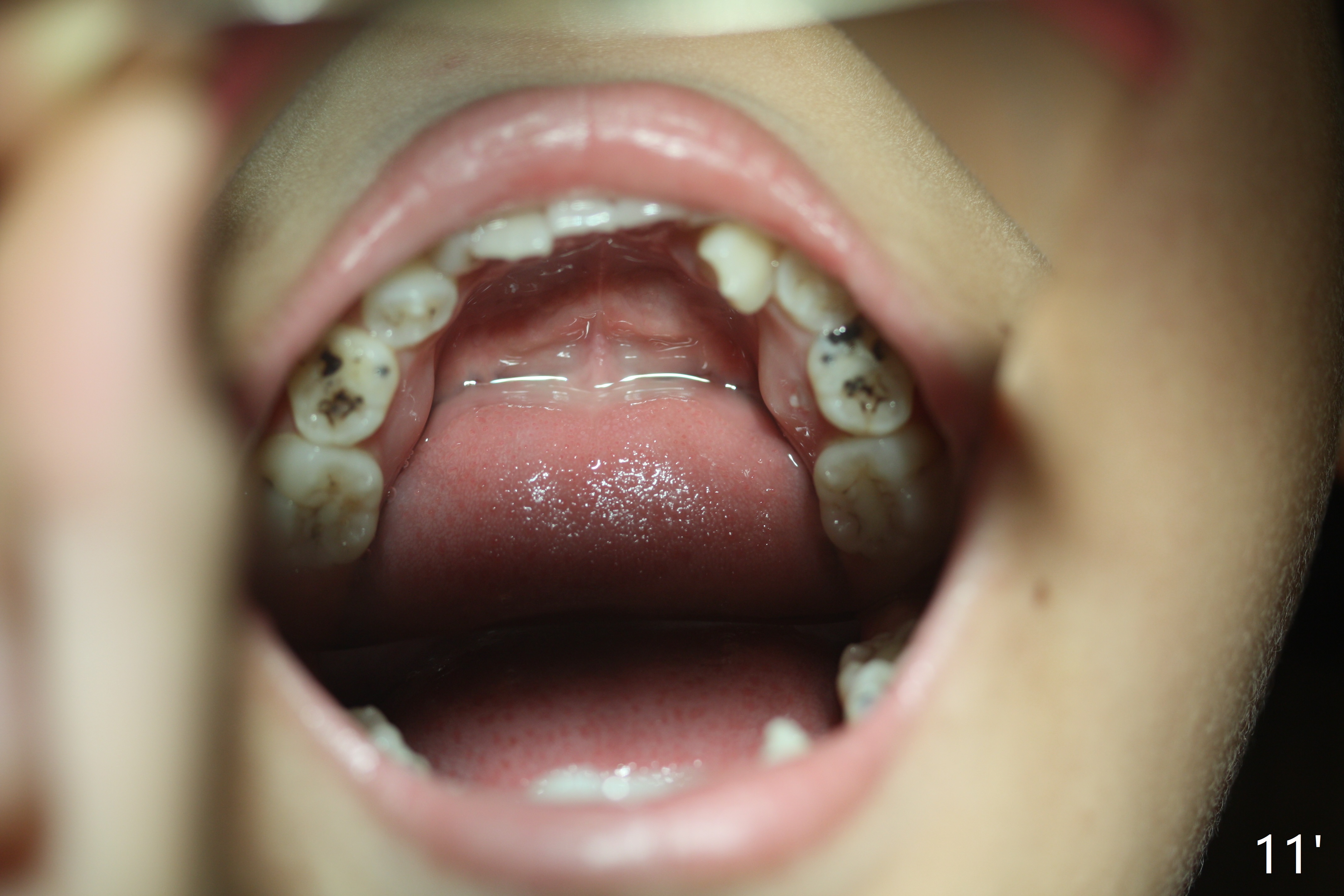 Retract the lower lip with a finger to expose the lower anterior teeth (Fig.11 vs. 11') .