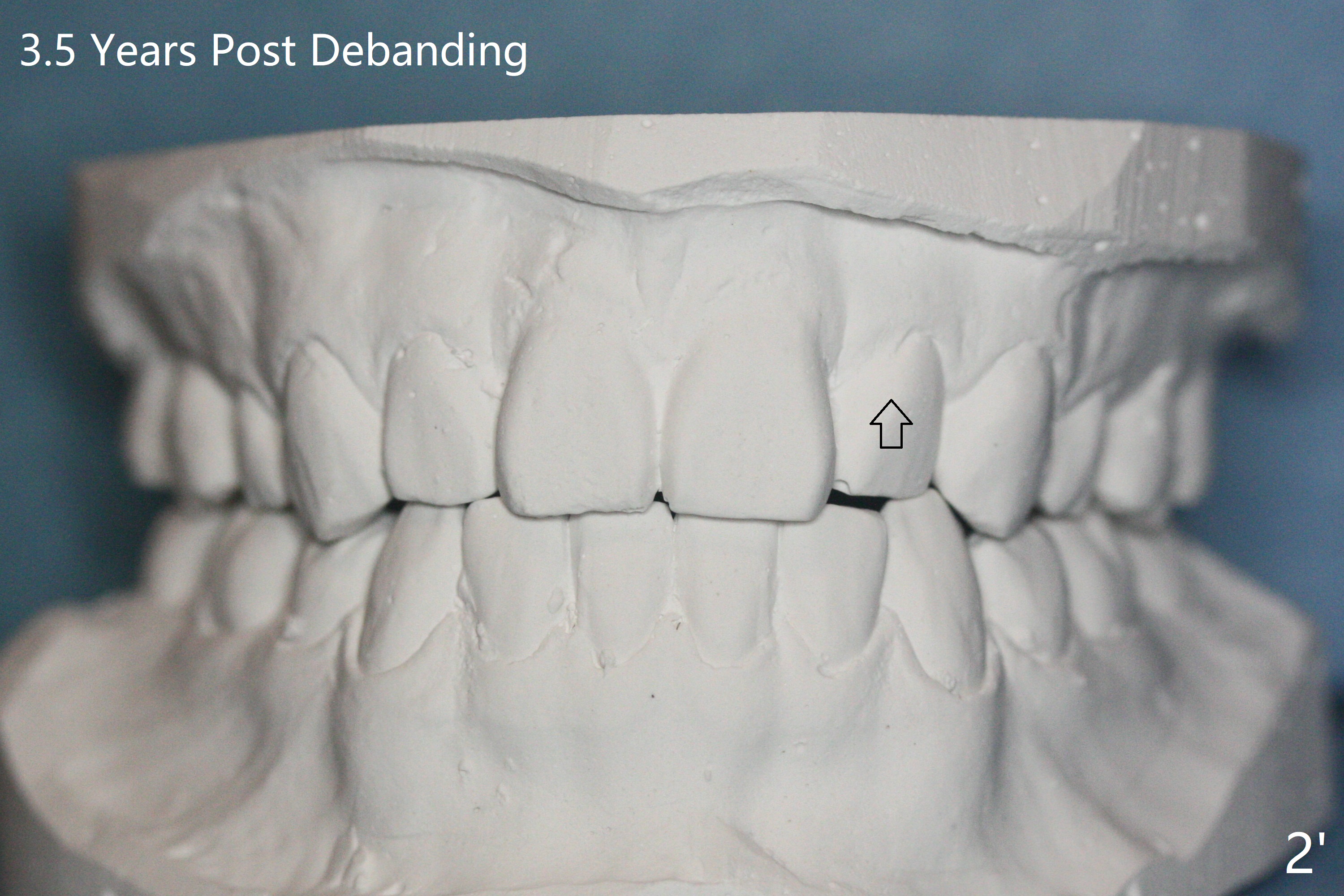 The patient (19 years old) returns for removable retainer redo post 3rd molar extraction 3.5 years post debanding