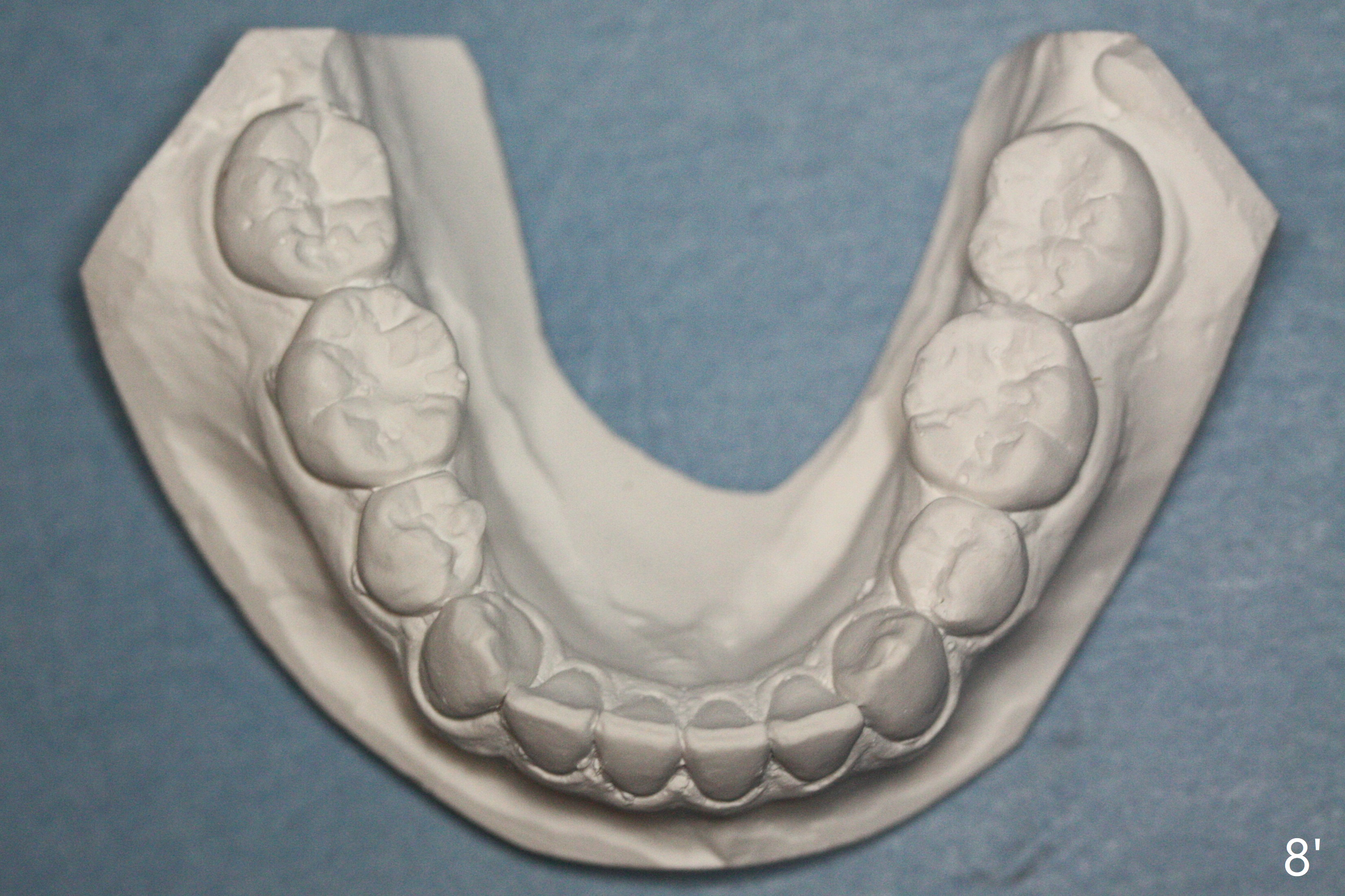 A 13-year-old man has severe malocclusion, including blocked out upper left lateral incisor (Fig.1,5) and macrodontia of the lower 2nd bicuspids (Fig.7). It is time consuming to introduce torque once the block out is released. It would be advantageous to place a special bracket on the lateral initially.