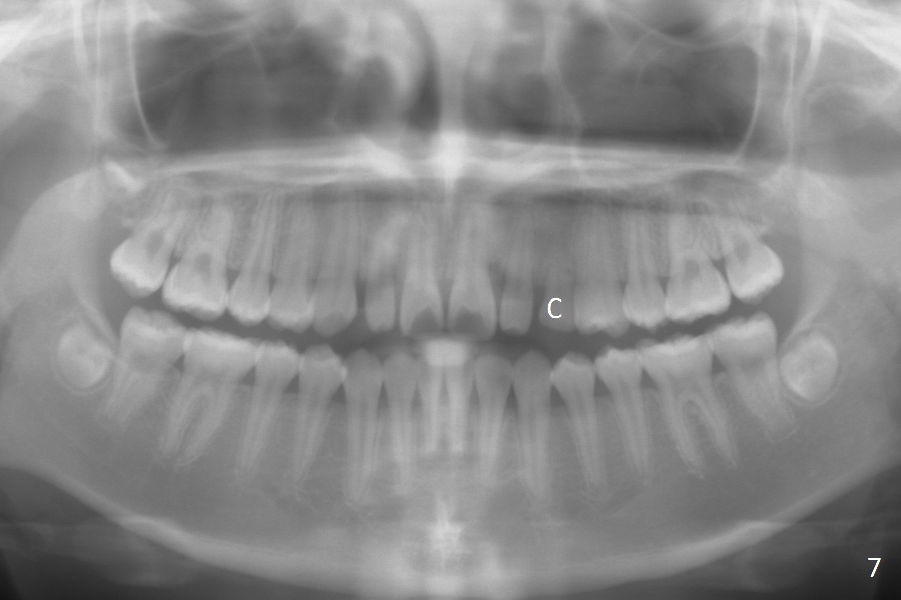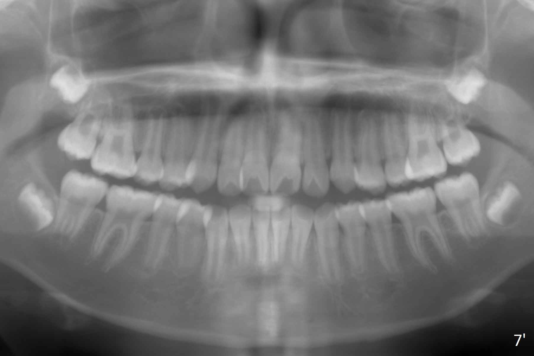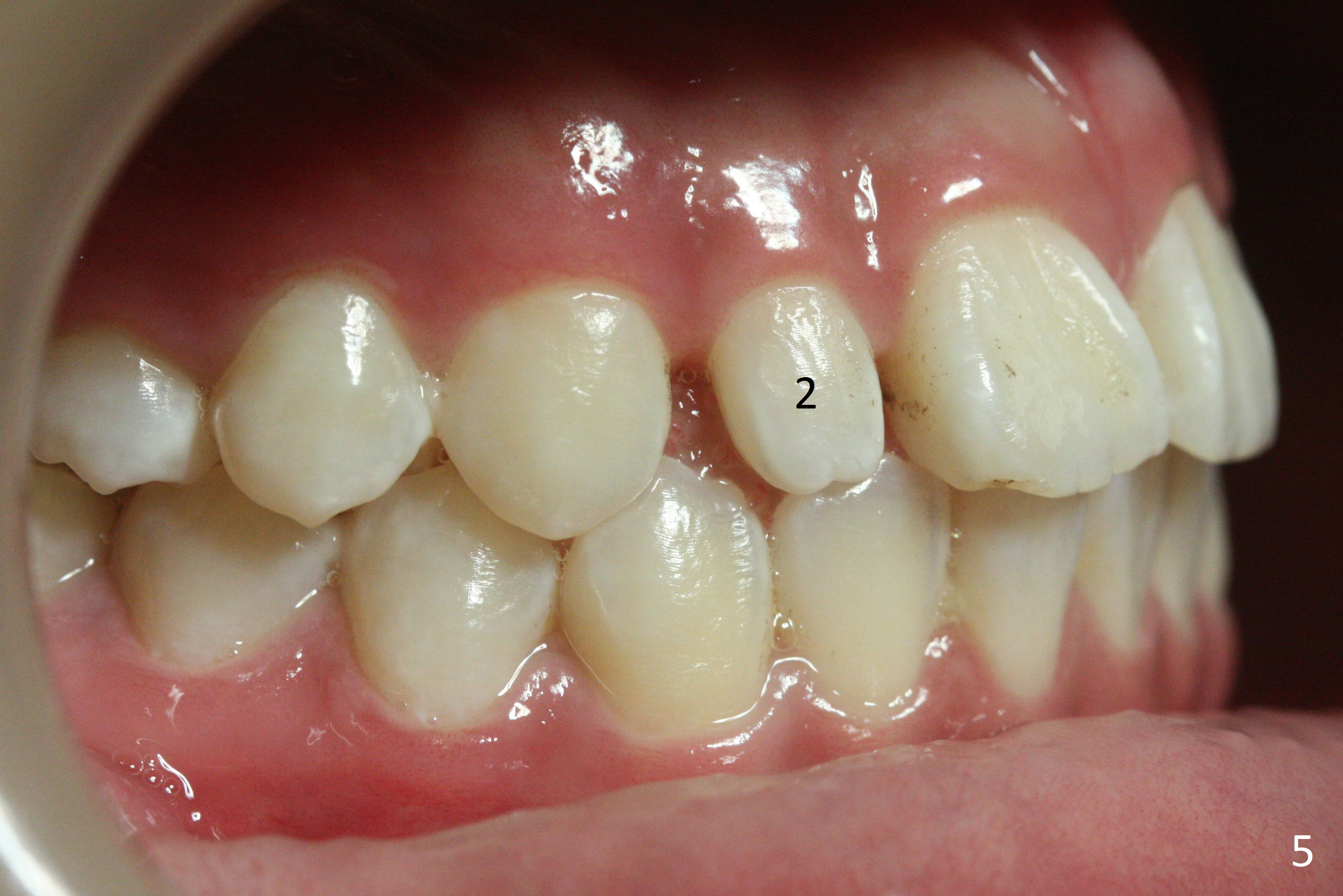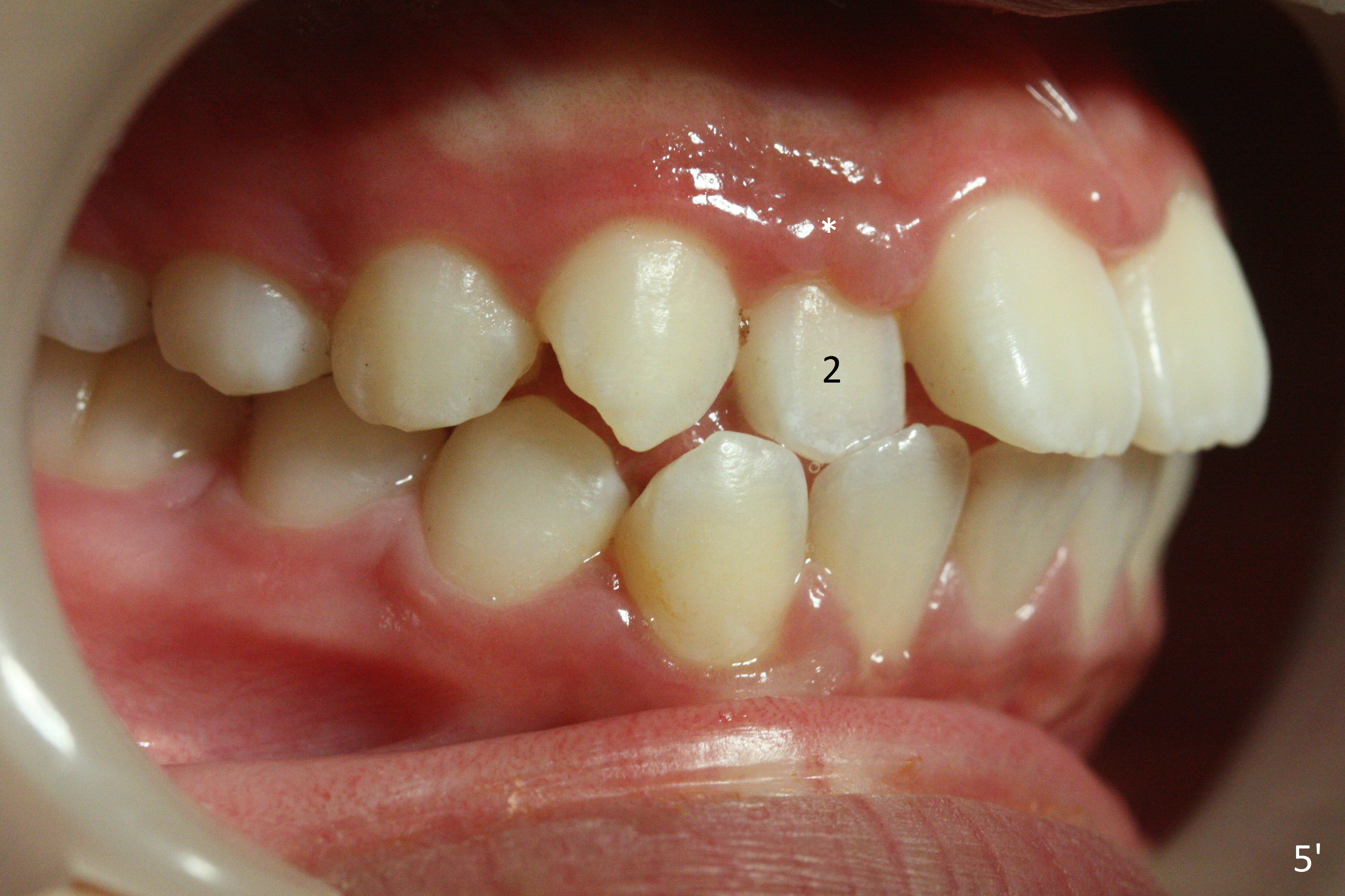 Two sisters (Sophia, 13 years old and Selina, 11) present to clinic for orthodontic treatment. Dental anomalies of Sophia include microdontia of the upper lateral incisors and congenital missing of the upper right permanent canine (Fig.5,6). For Selina, the upper right lateral incisor (Fig.5') and the upper left second bicuspid (Fig,6') are in cross bite.