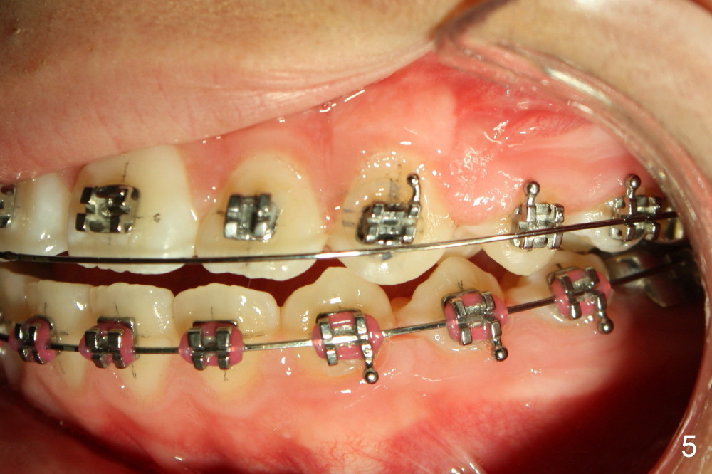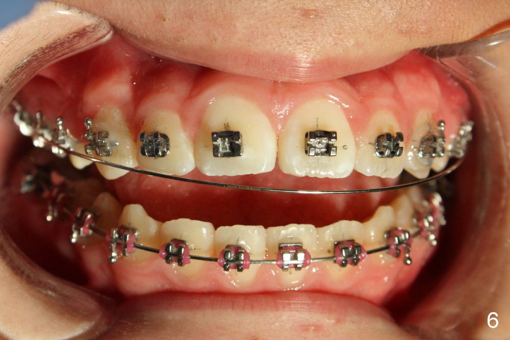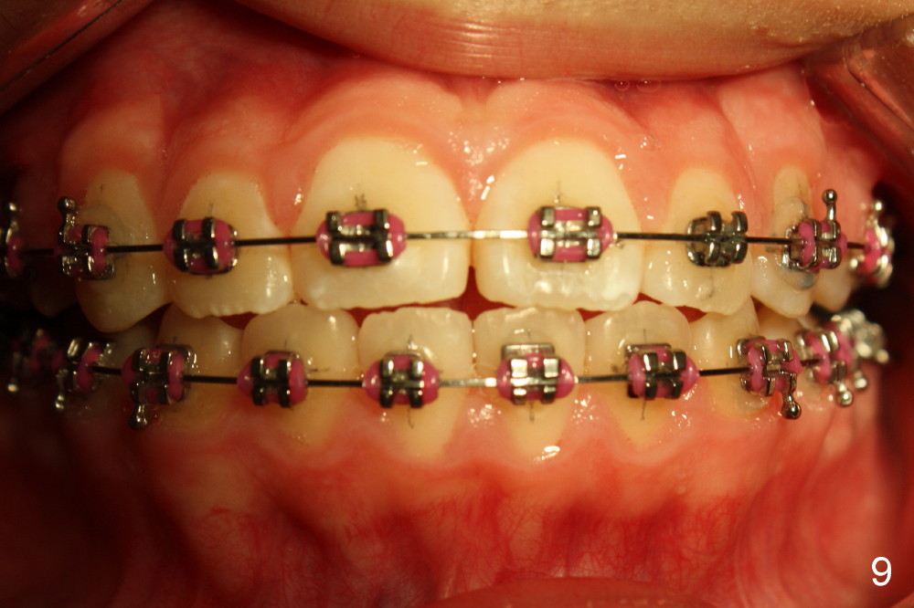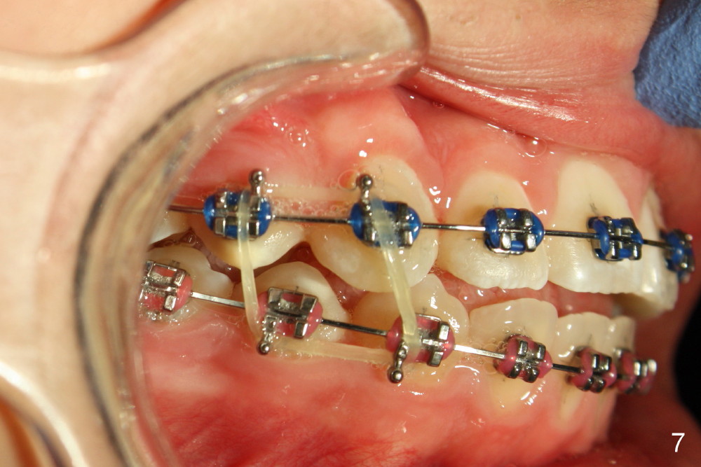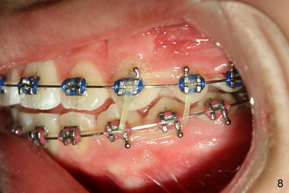 Since the open bite extends to the canine-premolar region, 1/4 elastics are used (Fig.7,8).