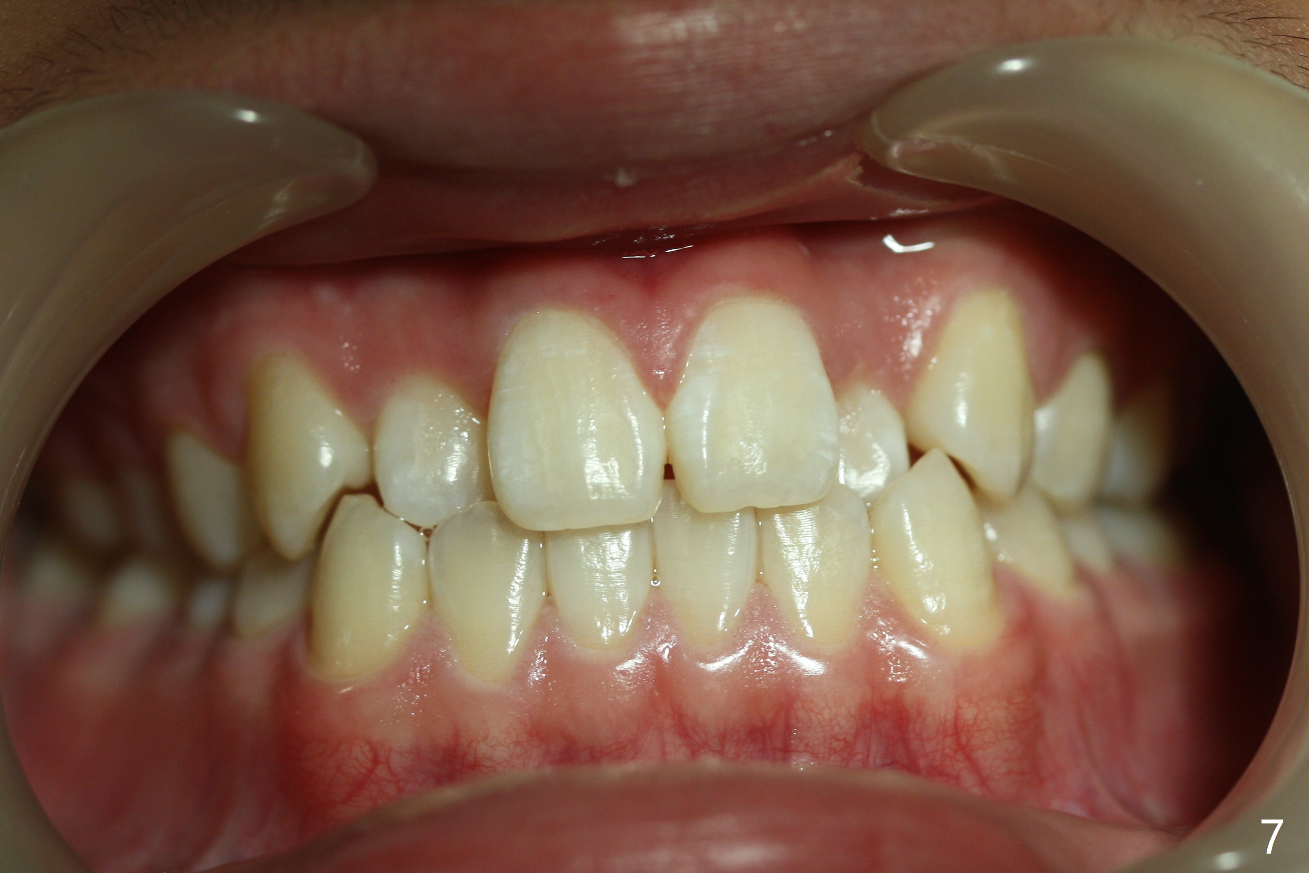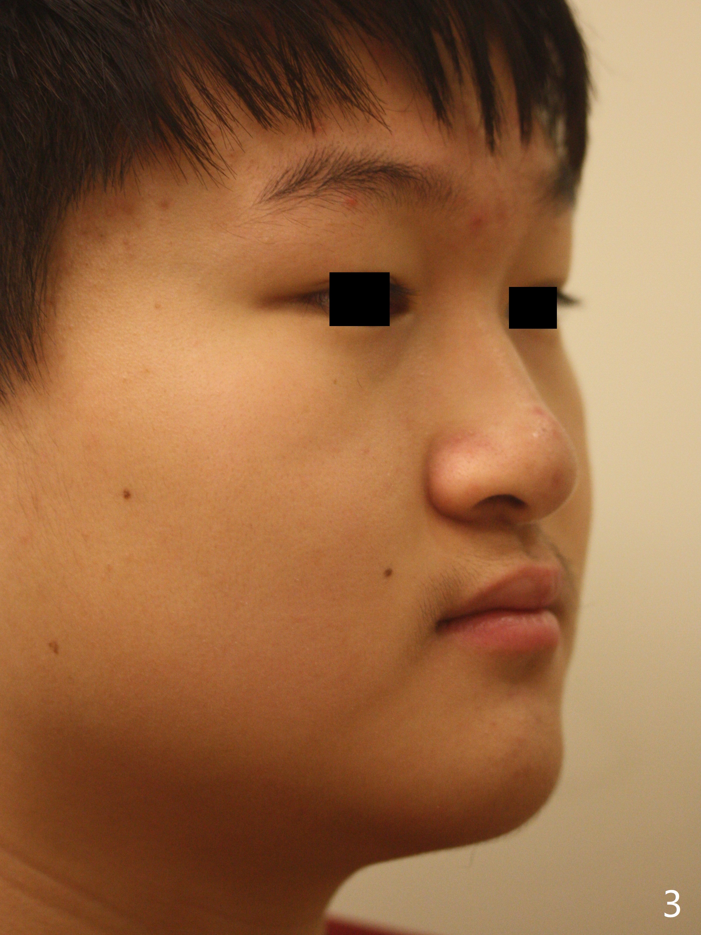 The upper dental midline of a 14-year-old man deviates the left (Fig.1,2,8) with midfacial concavity (Fig.3,4). The upper lateral incisors have cross bite, more severe on the left (Fig.6-8). Can we use open coil spring on the left first, a few months before the right, more or less to help correct the upper midline deviation? Cephalometric analysis shows Class III skeletal relationship (Fig.5,5',11).