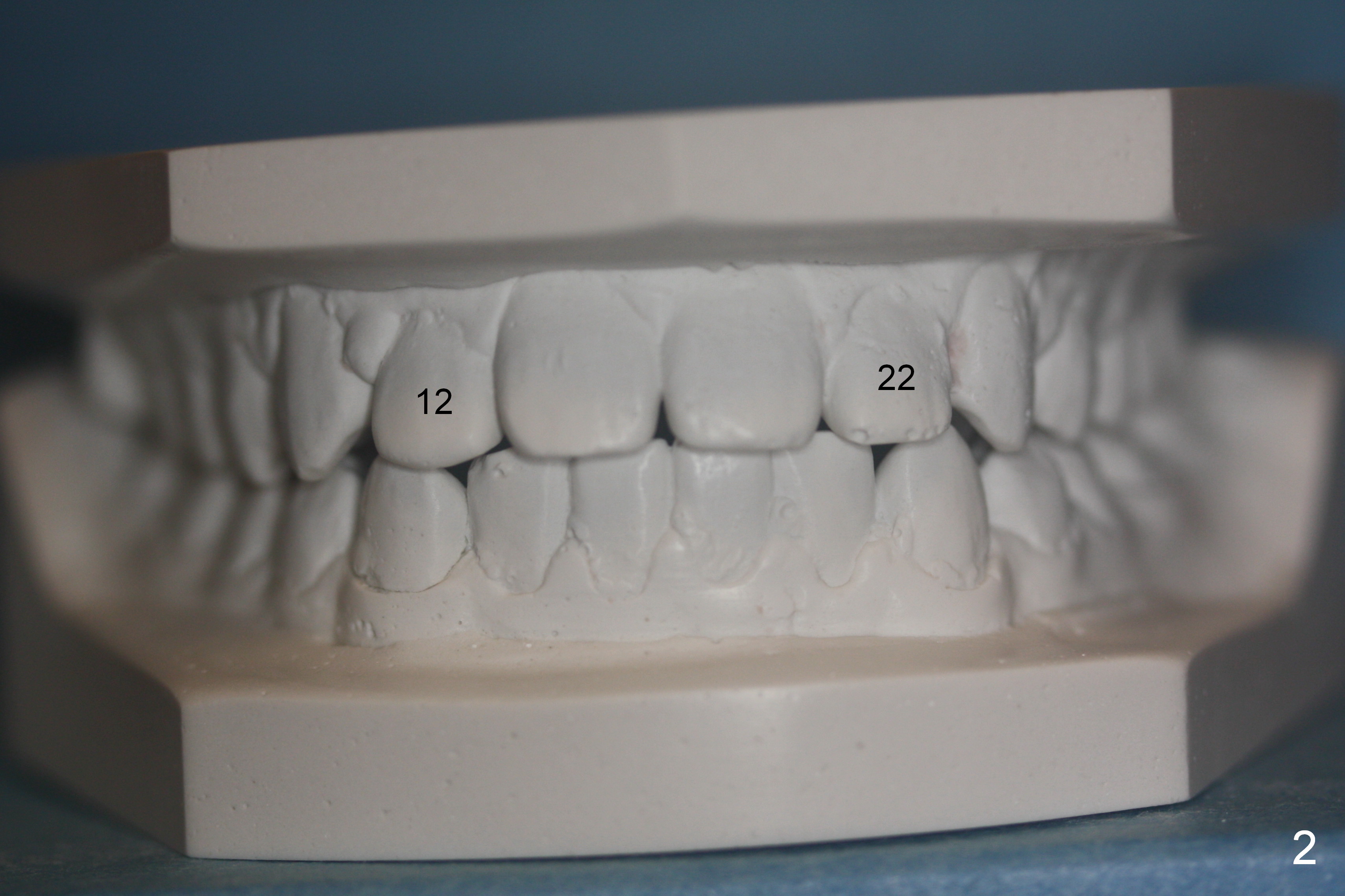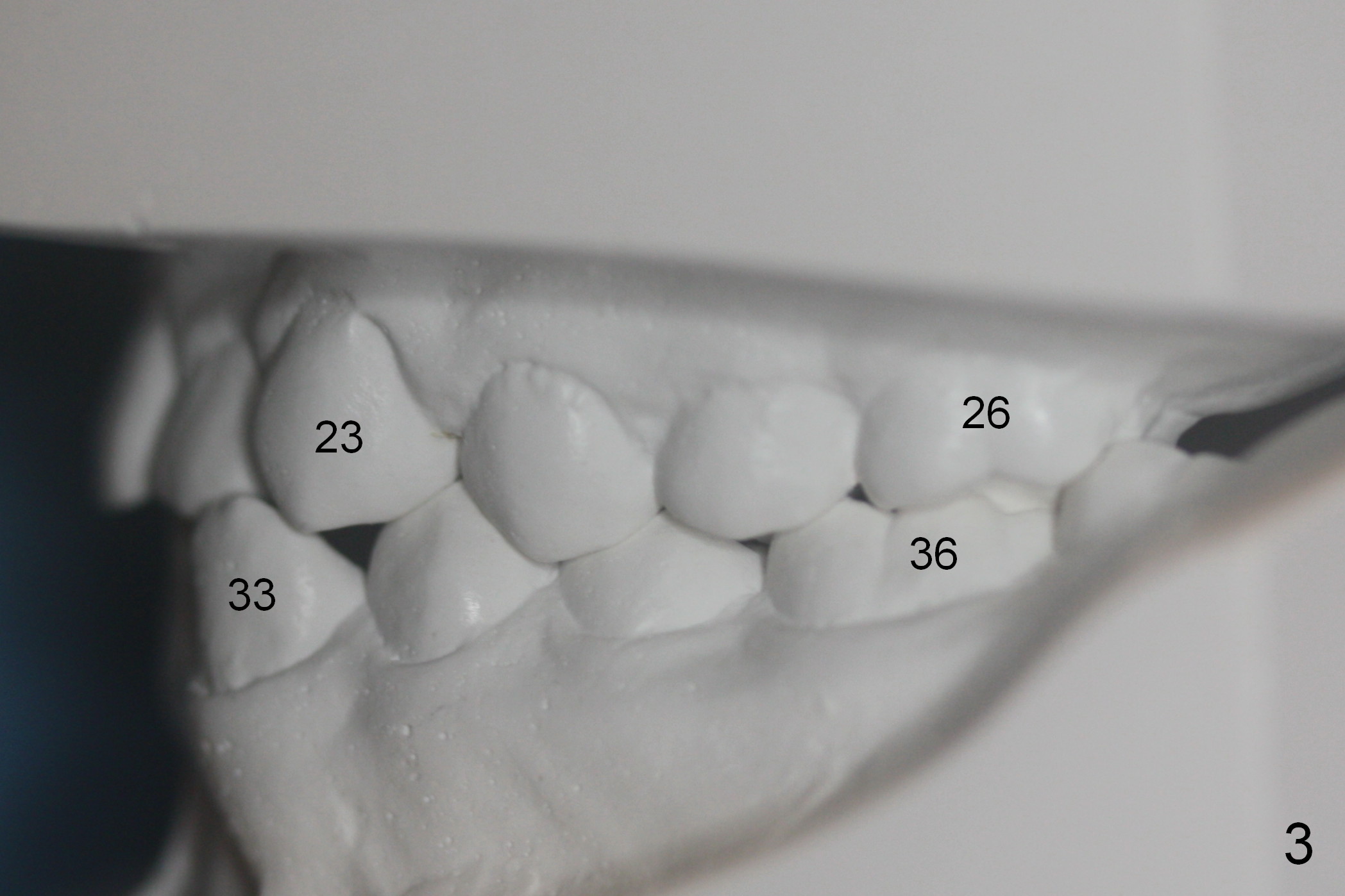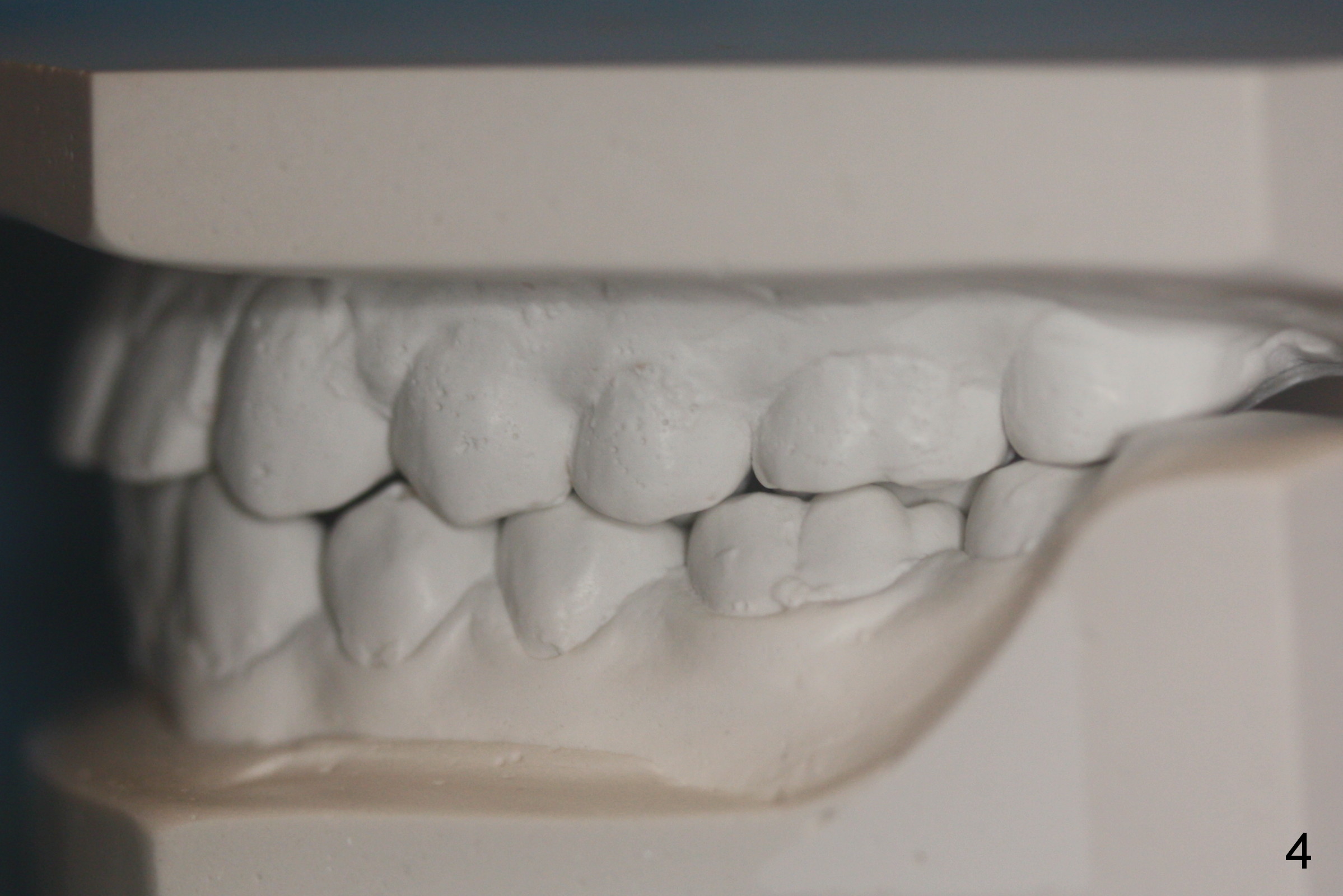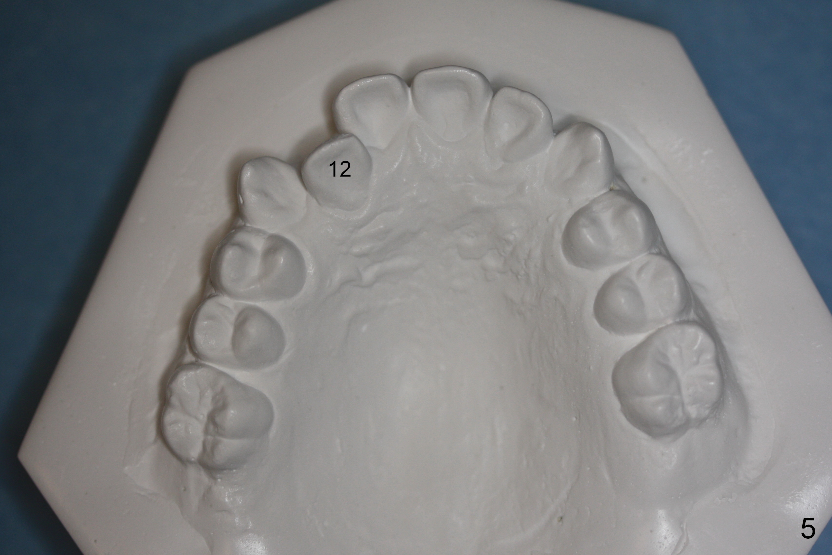 Phase II orthodontic treatment for a male lasts 3.5 years (from 13 years old to 16 years 8 months). The upper right lateral (Fig.2: #12 (pronounced one two)) needs more torque; it would be the best to place brackets upside down for both #12 and 22. Study the angulation and position of the blocked out lateral (Fig.5) carefully initially and have a good plan. Use power chains longer period of time so that the upper incisors do not look protrusive (Fig.4) with no space between them (Fig.2). Due to noncompliance, the upper 2nd molars are not re-positioned correctly (Fig.6 (#17,27)). The cement should have been removed prior to impression for postop model and retainers (Fig.6 *). The alignment of the lower arch, especially anterior segment, is impressive (compare Fig.7,8), to the patient's mother as early as after phase I treatment.