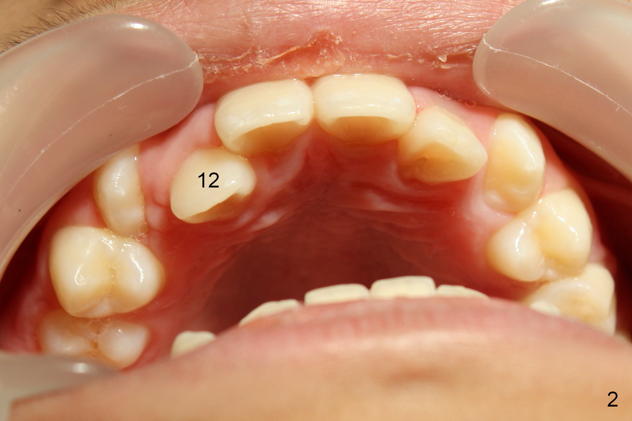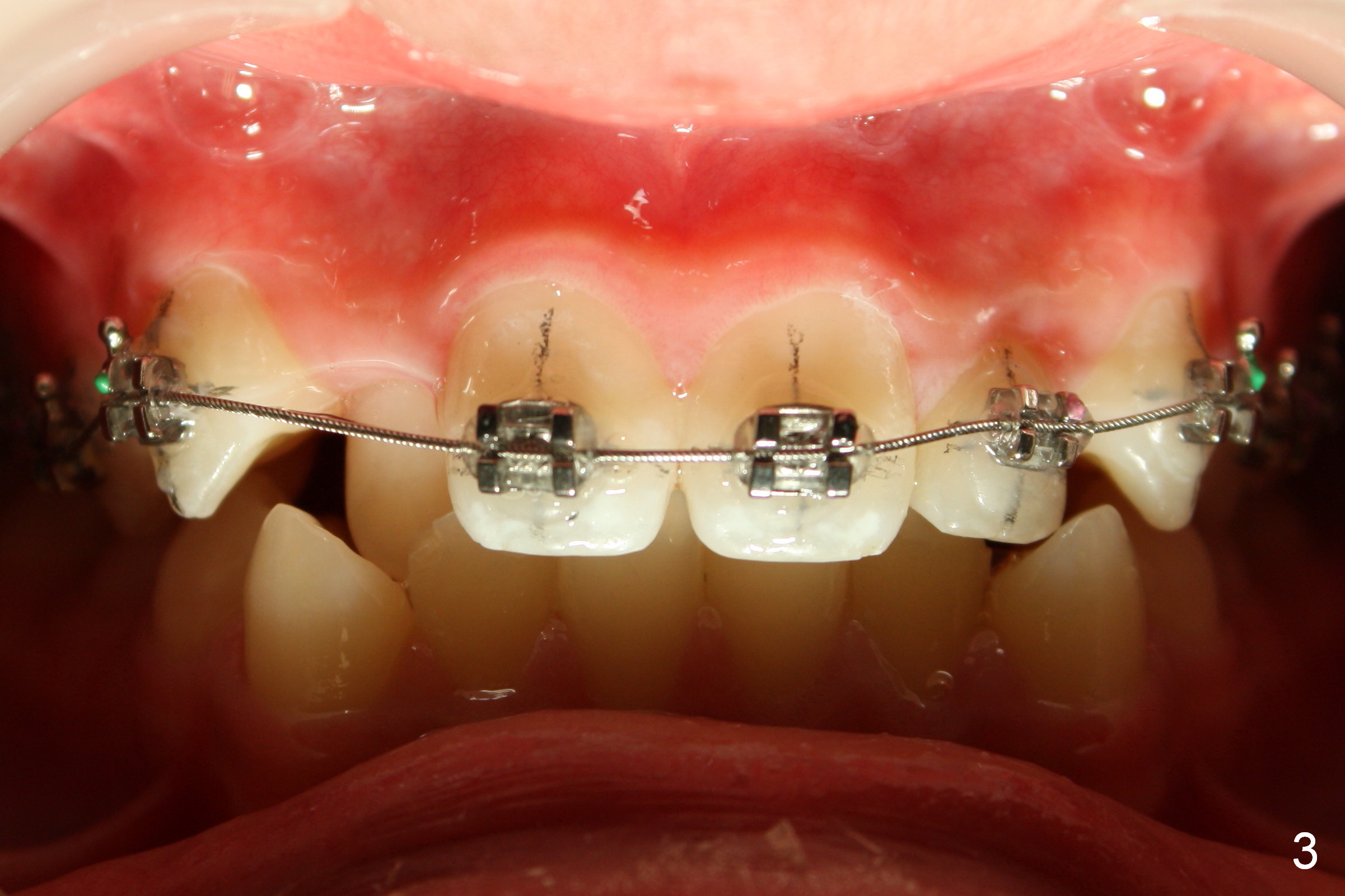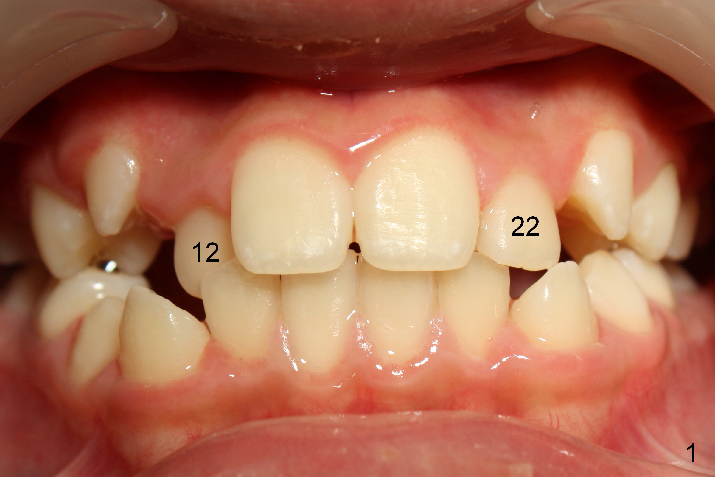 Another issue is late eruption of 2nd molars (Fig.8,9 (17 (one seven),27 (two seven)), 16 months post bracketing). The patient is not compliant with wearing elastics. The final result is not ideal.