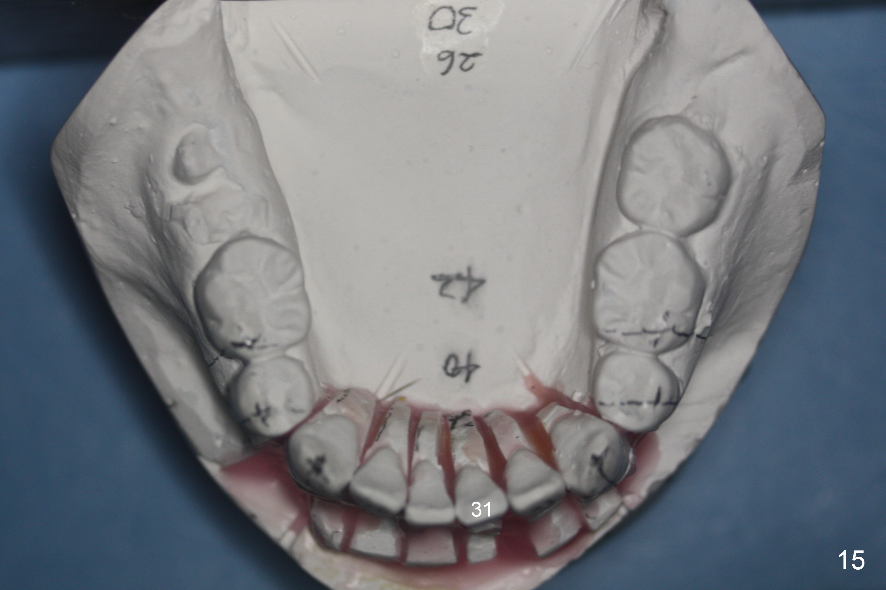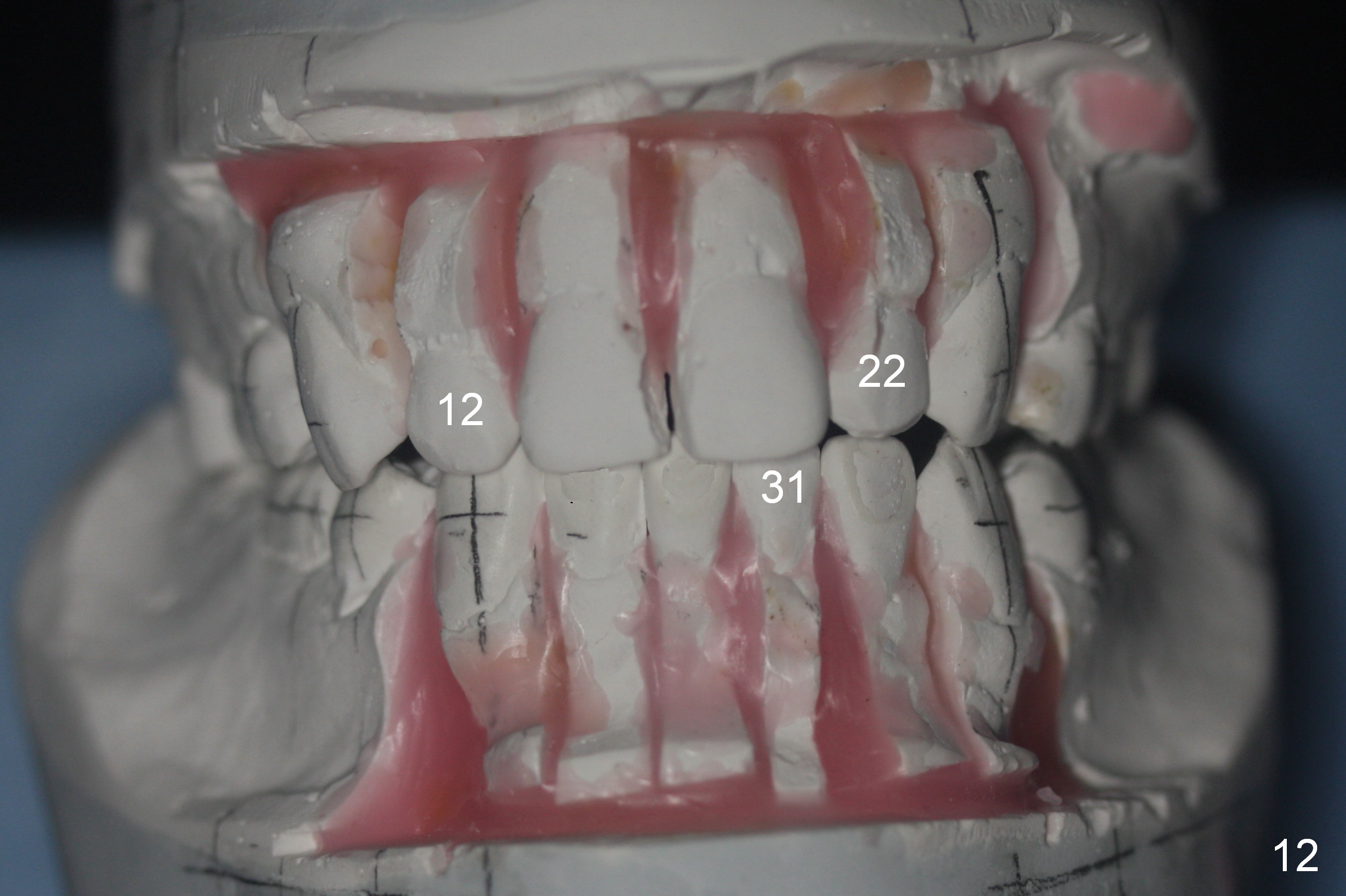A 37-year-old man requests orthodontic treatment for severe crowding with 3 blocked-out incisors (Fig.1-5: 12,22,31 (International numbering, pronounced one two, two two and three one)). The upper and lower arches are pointed (Fig.4,5). The best option is extraction of 4 bicuspids (Fig.11-15).