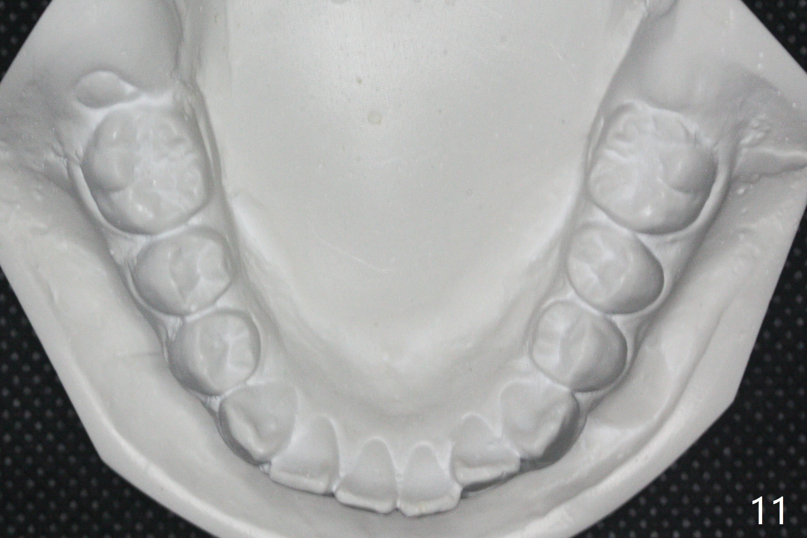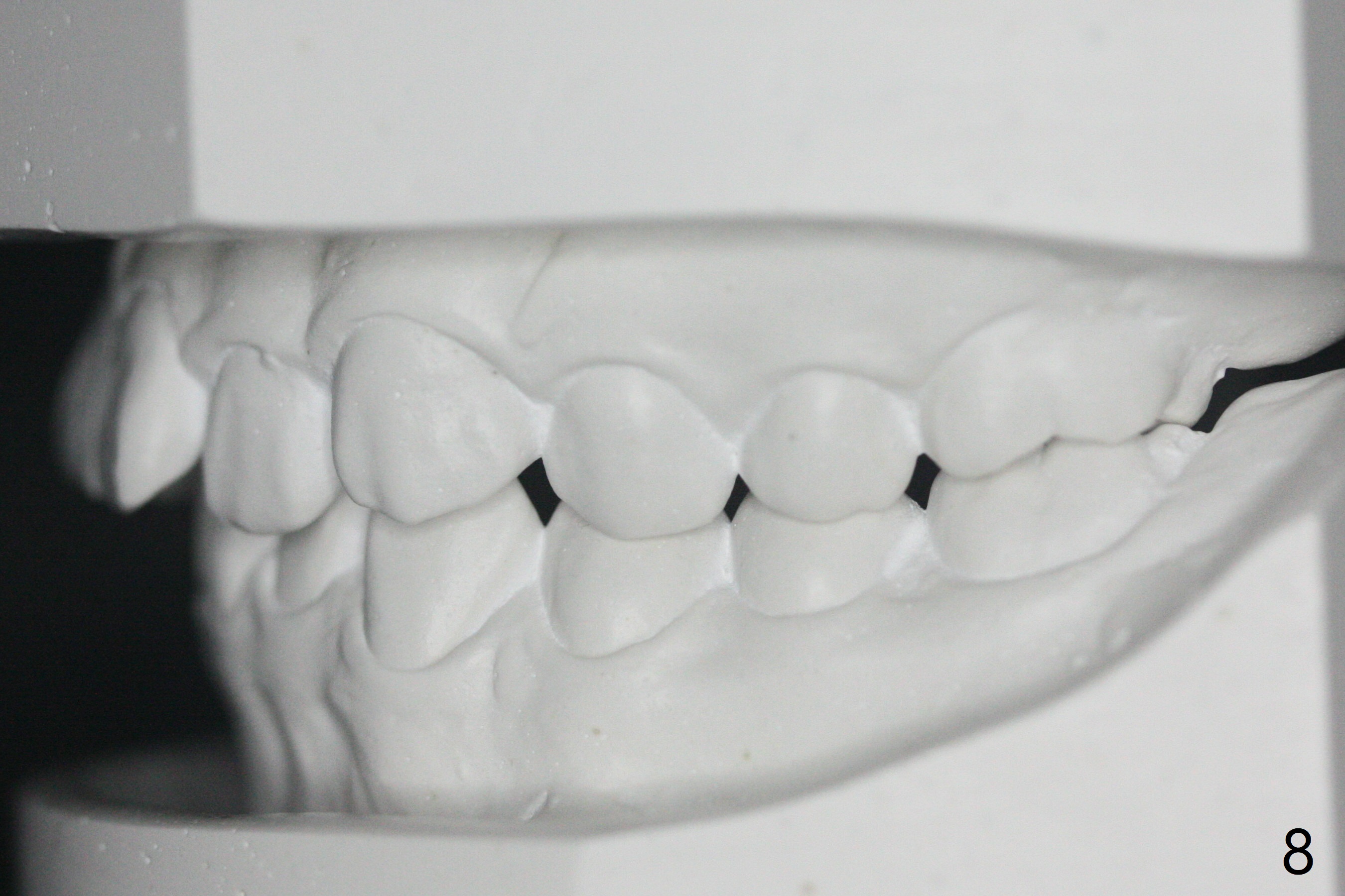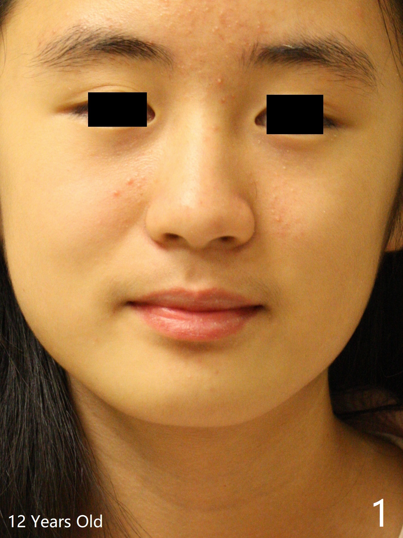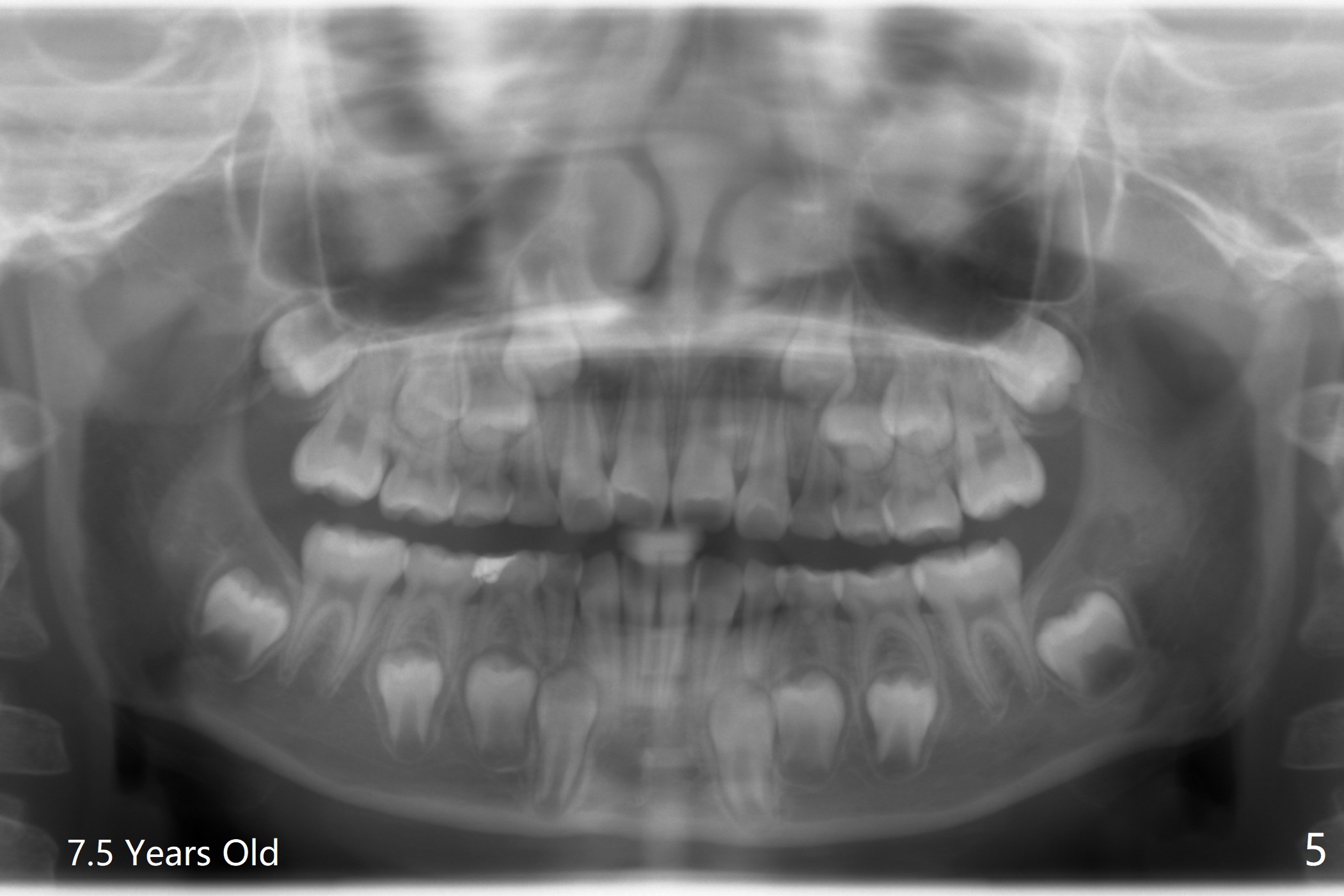 A 12-year-old woman has Class I facial profile (Fig.1-4,12,13) and apparently Class II Division I malocclusion (Fig.6-11). Start Class II retraction as early as possible to take advantage of the upper and lower posterior diastemata (Fig.9,11 (in fact there is no diastema)). LL7 impaction is noted immediately prebanding (Fig.14). Surgical access is pending.