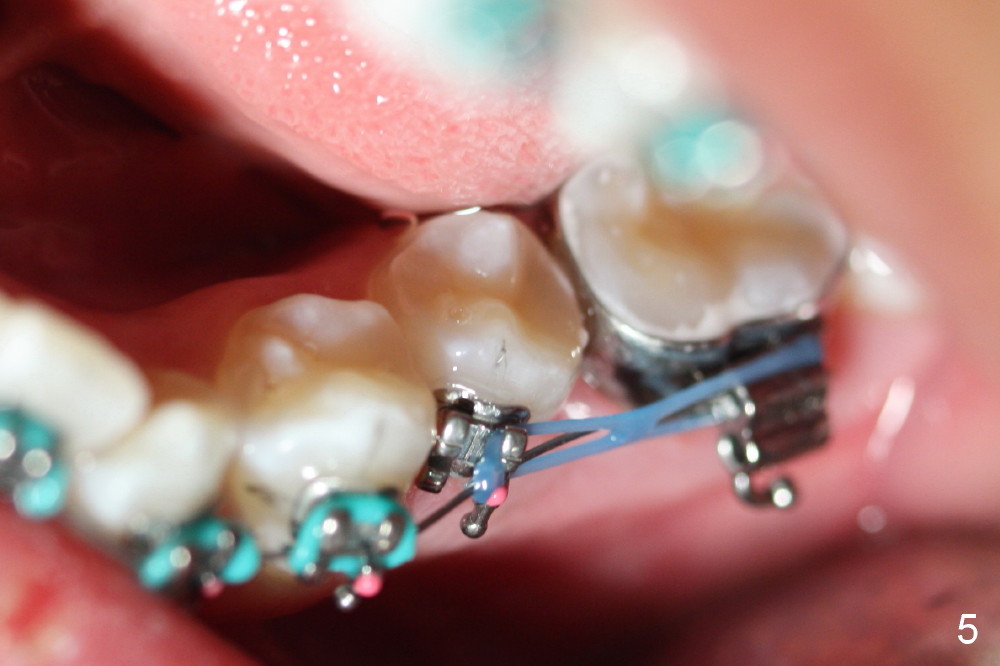 Next visit the same wires may be kept with attention to engage the lower one to the mesial wings of L5 brackets. Note the condition of wire engagement before removing them.