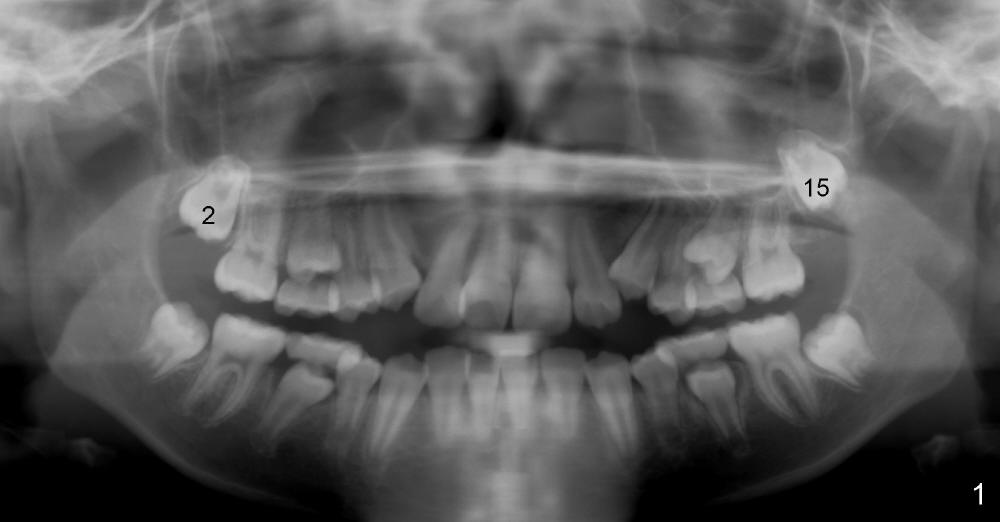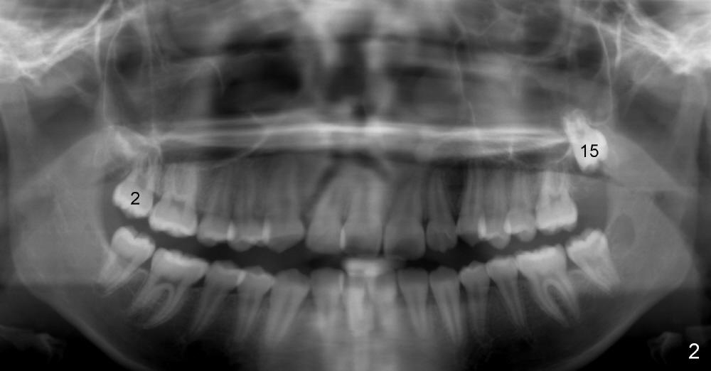 Now at the age of 12 years 10 months, #2 has erupted whereas #15 remains unerupted (Fig.2).