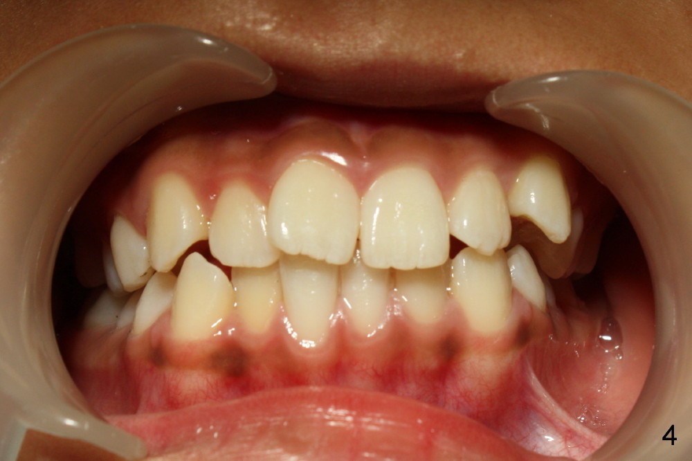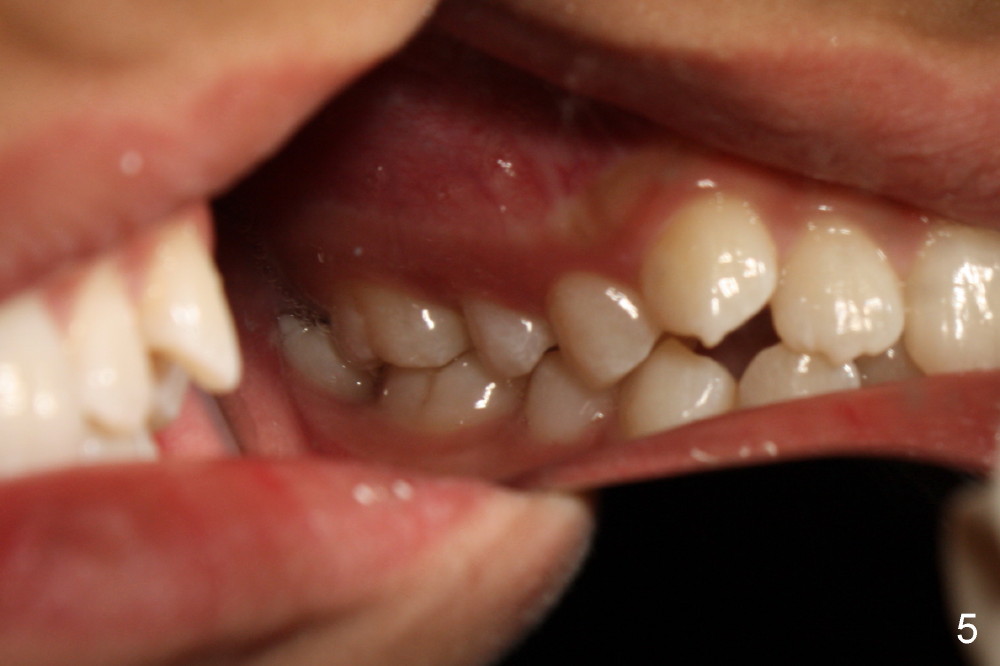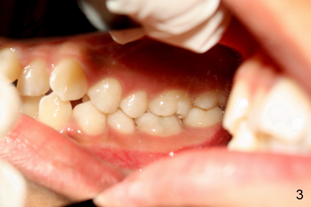 There is basically Class I occlusion in molar and canine regions bilaterally (Fig.3,5). Crowding is severe in the anterior area (Fig.4).