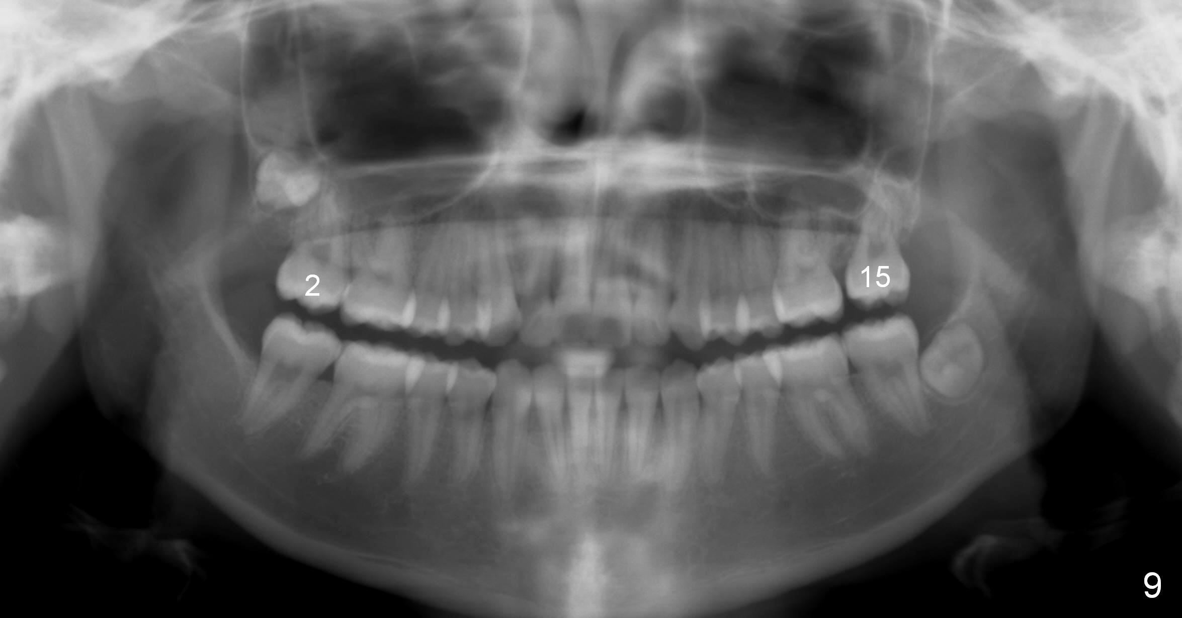 Treatment finishes in 2 years. The patient (15 years 2 months old) returns for follow up 3 months post debanding (Fig.9, compare to preop). Uncover Last Next Xin Wei, DDS, PhD, MS 1st edition 11/28/2015, last revision 12/15/2019