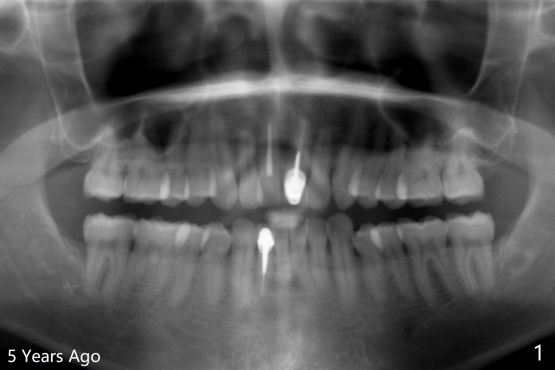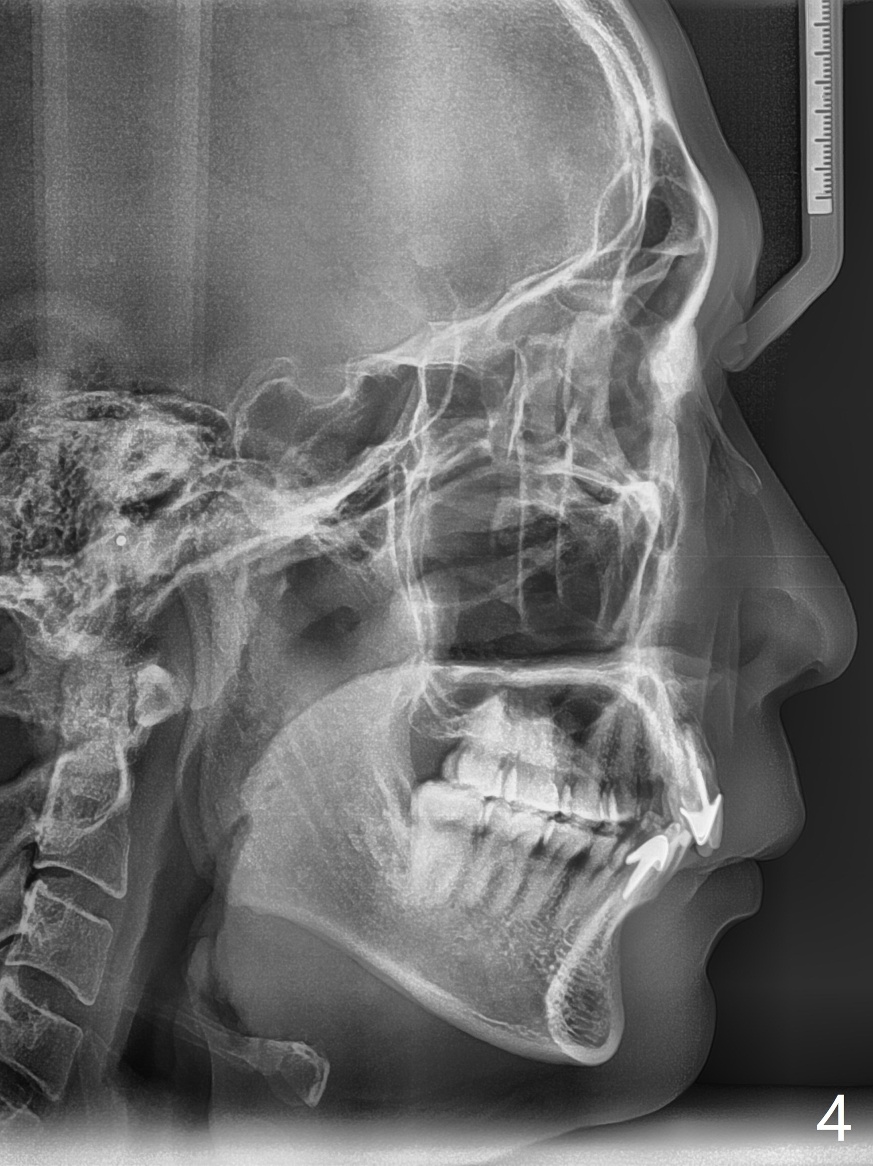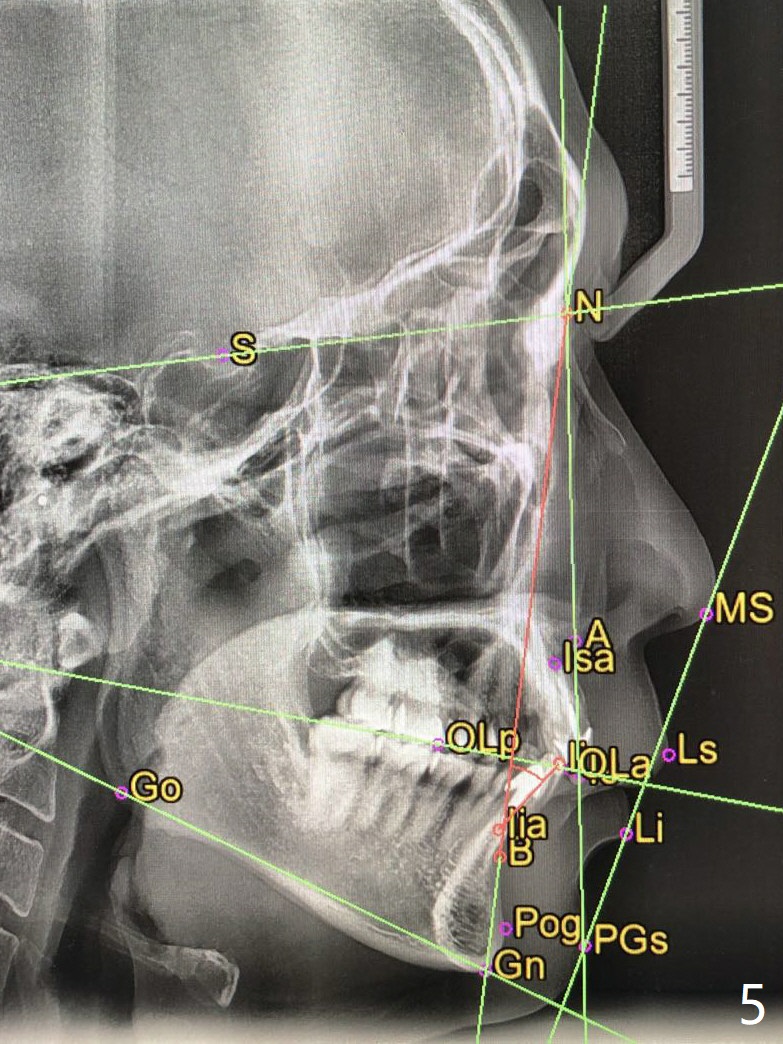 42岁男,小的时候做过矫正,据说智齿萌出后,畸形复发(图一至三)。临床检查显示:上前牙前突,下门牙拥挤,磨牙二类咬合。头颅侧位定位片证明Class II Division I Malocclusion (图四至六):SNA 84.63, SNB 76.11, ANB 8.52。 下周病人复诊,将拍摄照片,取模。正在考虑是否需要拍摄CT,排除上,下切牙是否位于牙槽骨唇侧,有利于做出拔牙决定。