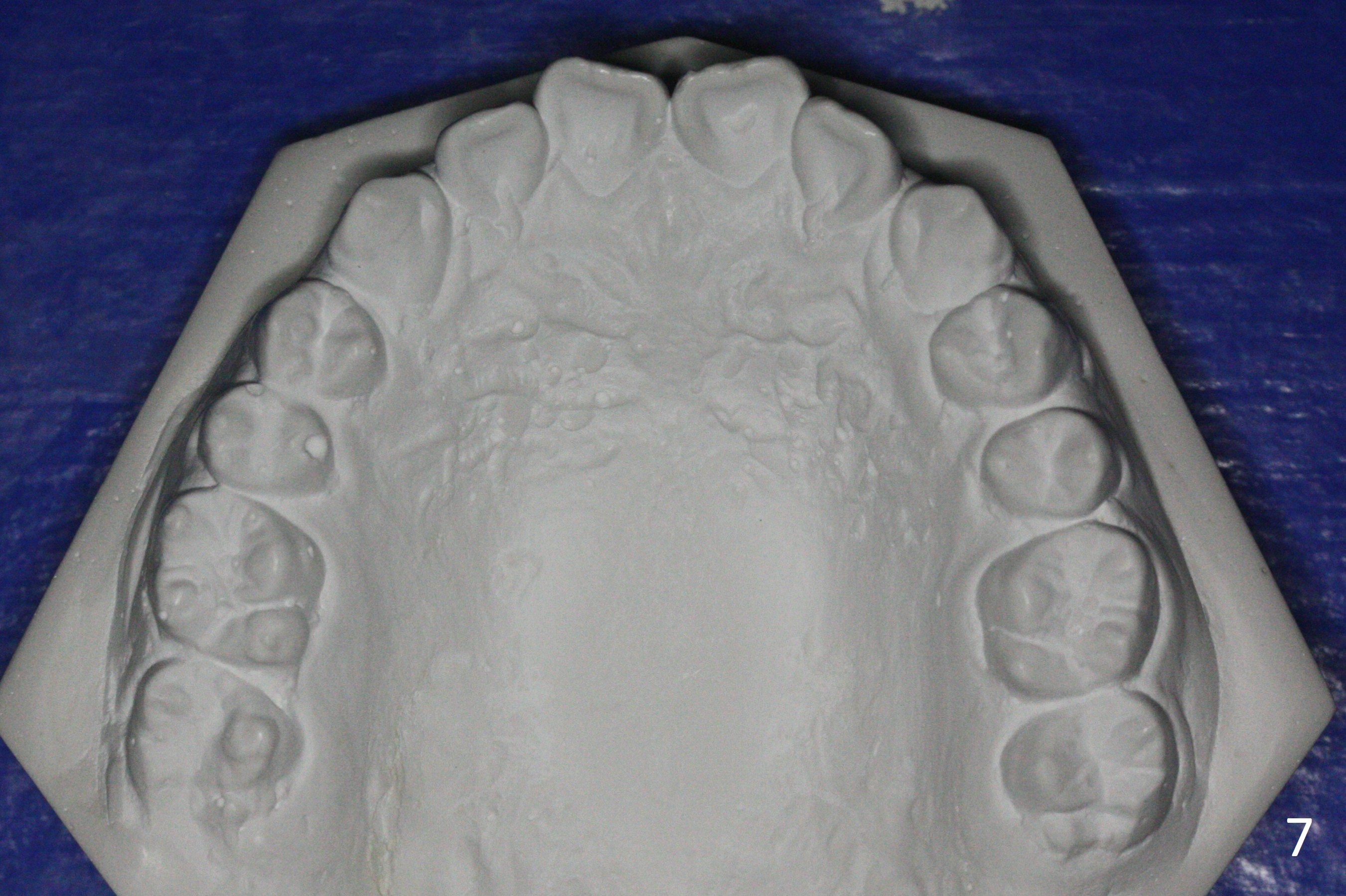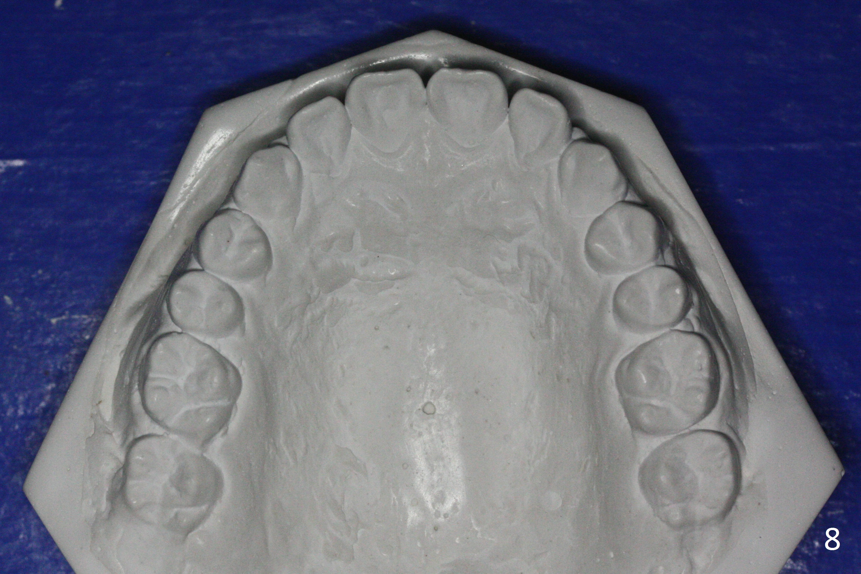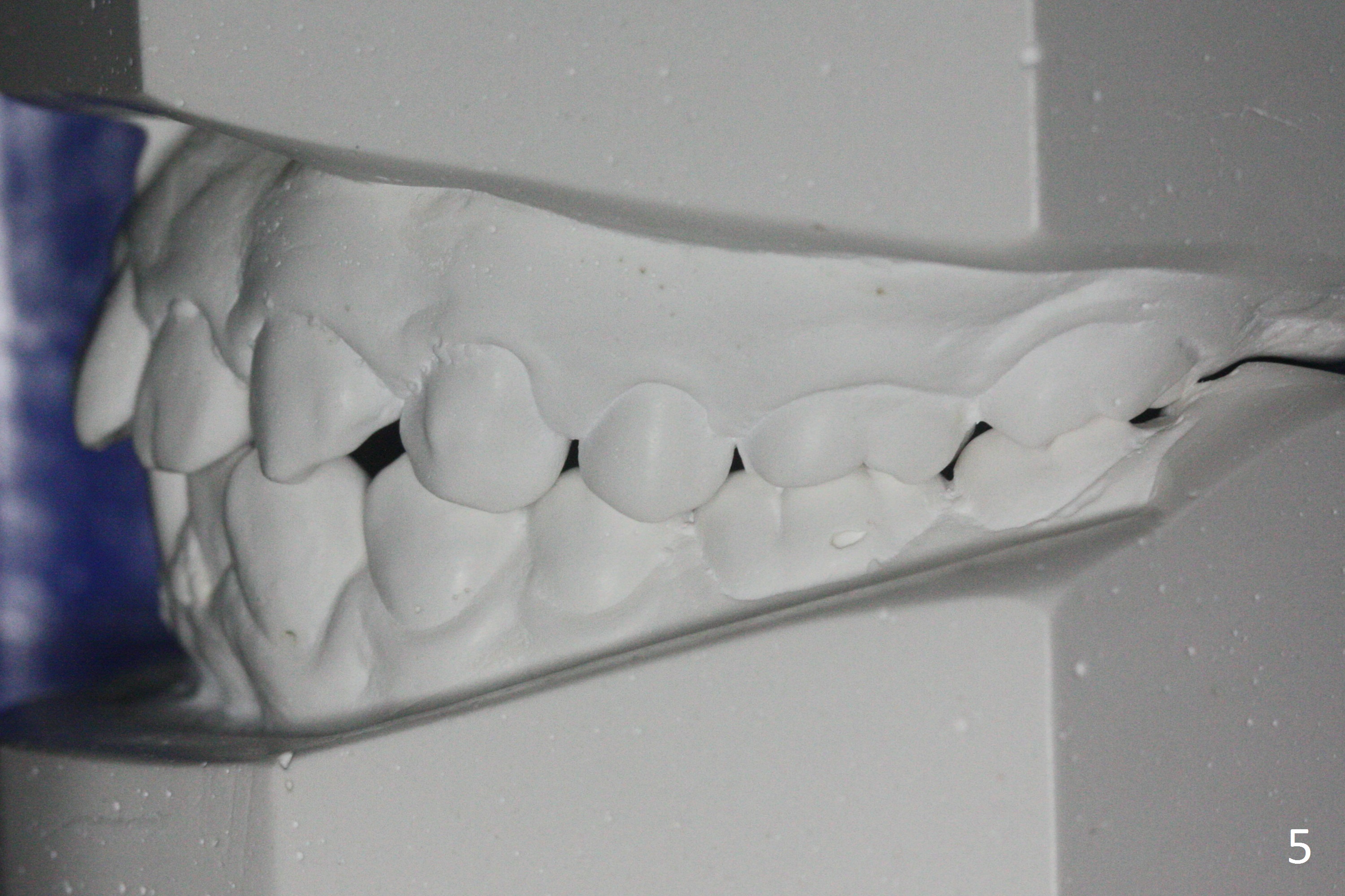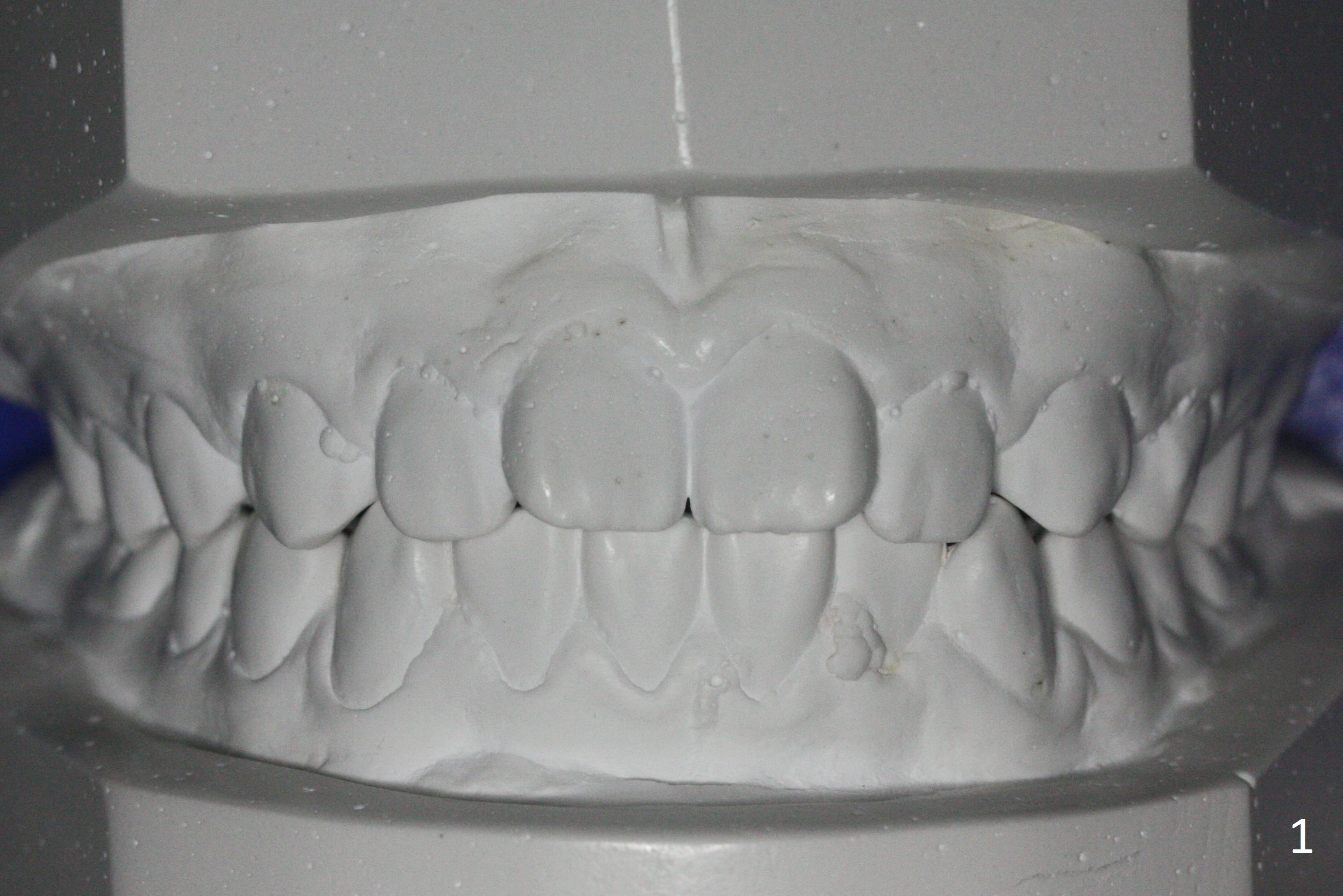 A 15-year-old man undergoes orthodontic treatment for crowding (Fig.1,9). By 3 months of treatment (18 ss wires), upper gaps appear, which are corrected by power chains for 5 months (Fig.3). When wires change to segmental ones (19x25), use of power chain discontinues. The upper diastemata relapse in the last 3 months of treatment (Fig.2,4). In fact there are posterior gaps preop (Fig.7). The use of power chains should be continuous until brackets are removed. The hidden gaps can be shown by blowing air from a 3-way syringe. Another way of revealing the diastemata is to take impression prior to debanding. Hawley appliance can be used to treat post-debanding diastemata.