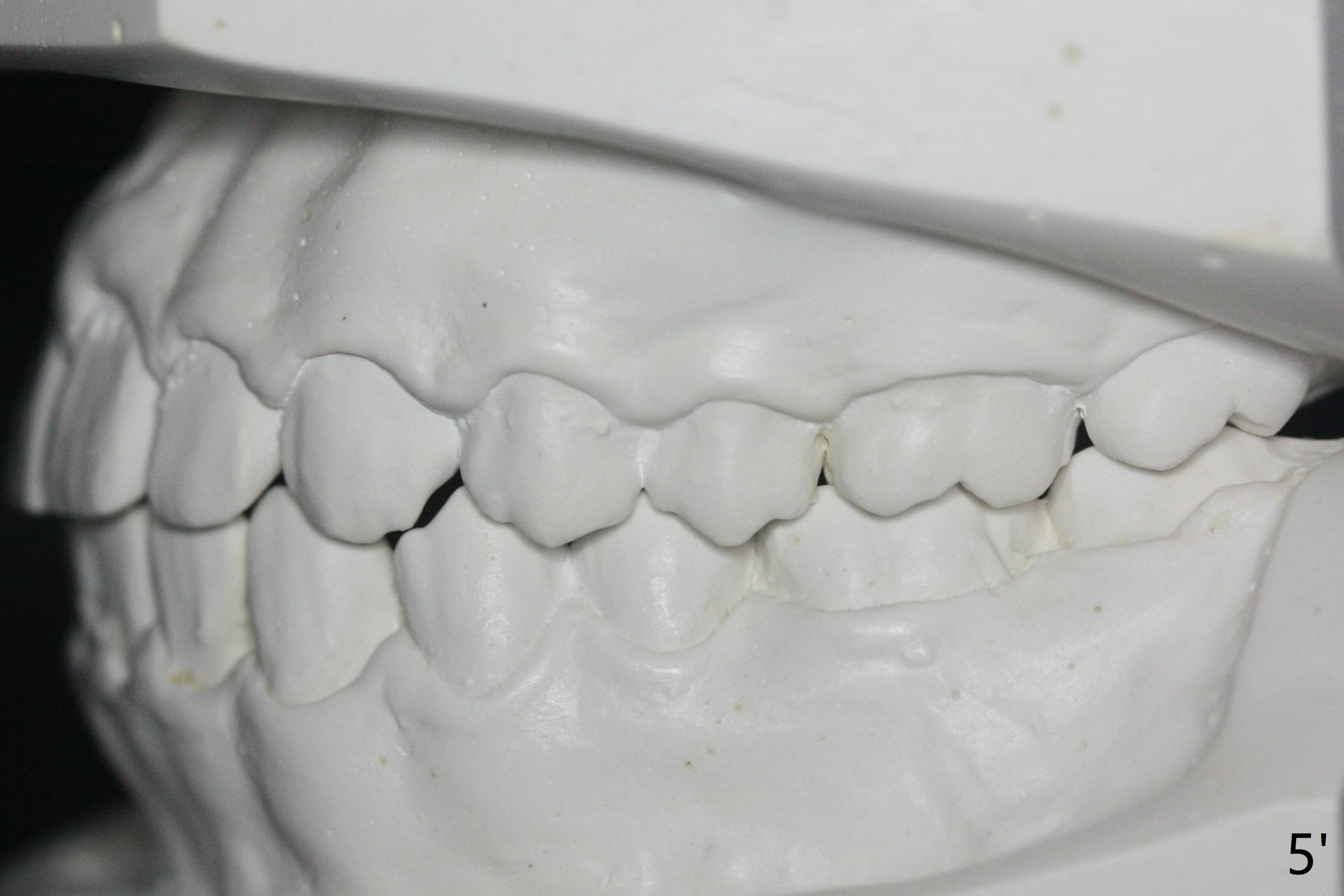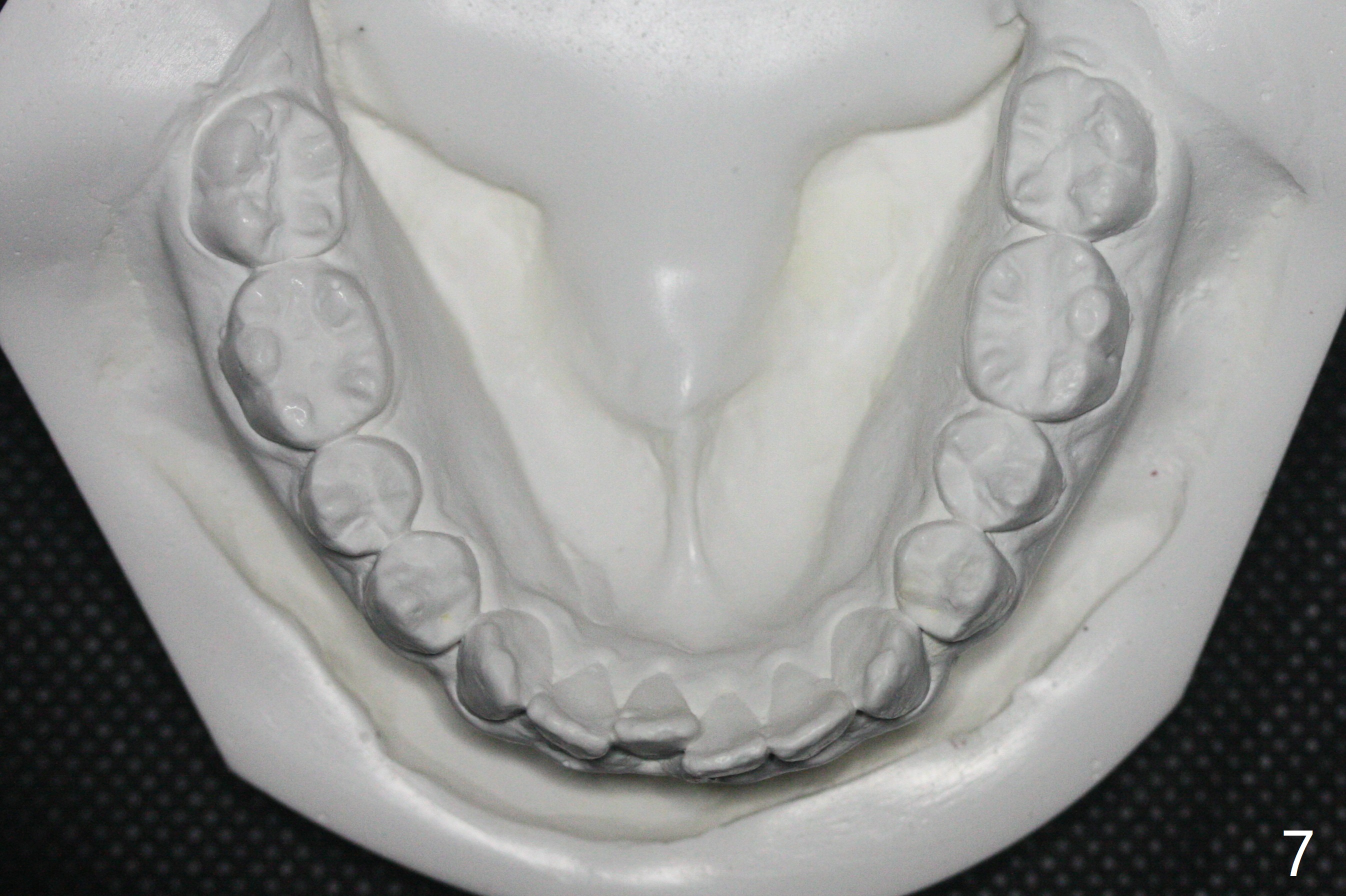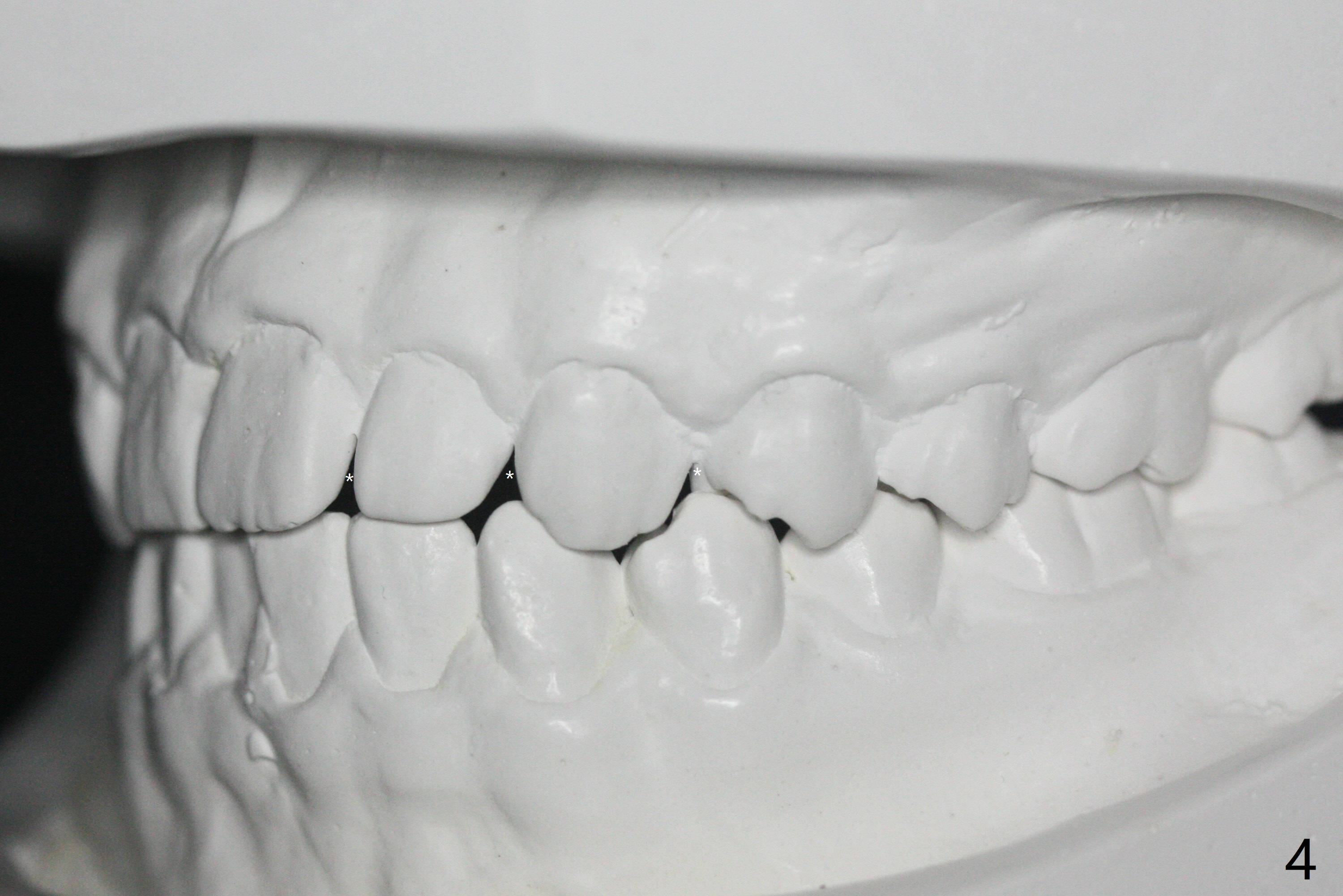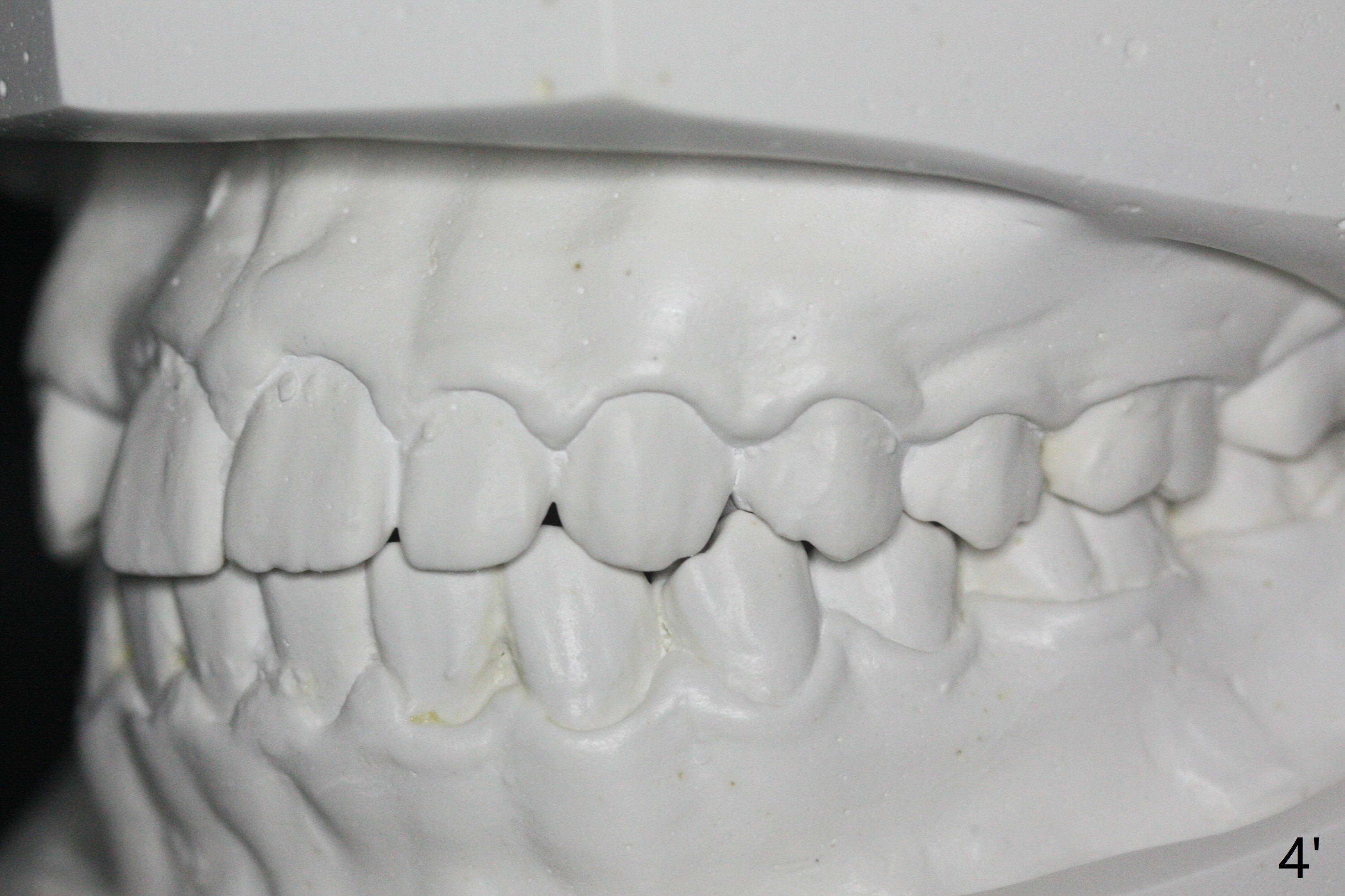 A 15-year-old man finishes orthodontic treatment for congenital missing lateral in 13 months. Molar Class I relationship remains the same (Fig.1,2,4,5). The upper diastemata mesial to 4s (Fig.4,7") close with correction of the upper midline deviation (Fig.2'-4'). The kid is unpleased with the elongated UR1 (Fig.2',3'). In fact it is a preexisting condition (Fig.2 arrow, 2"), but bracket placement at UR1 should have been overcorrected (incisal placement, Fig.3"). The intrusion should be done (Fig.4") before closure of the diastemata, since anchorage may be weakened when the separation between UR1 and 3 increases by using open coil spring. To prevent immediate relapse of the diastema between the upper central incisors, a fixed retainer is placed lingual before debracketing (Fig.6,6',6").
