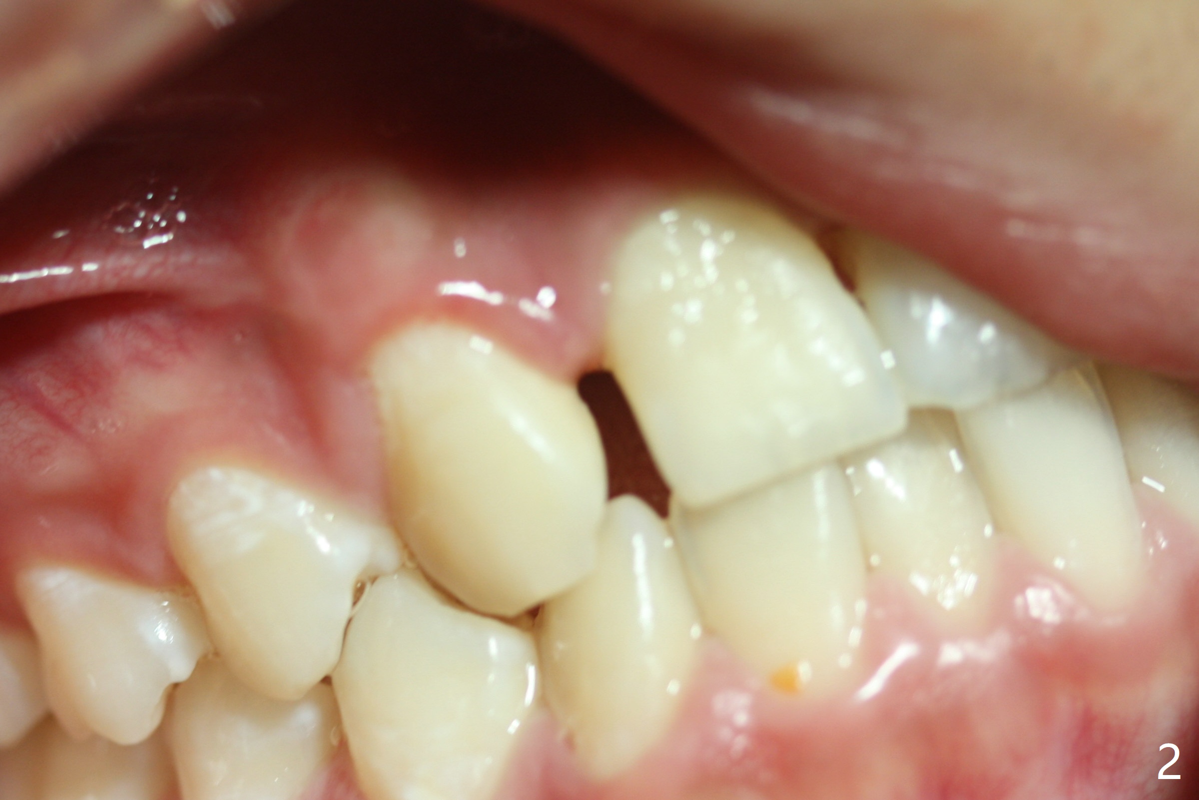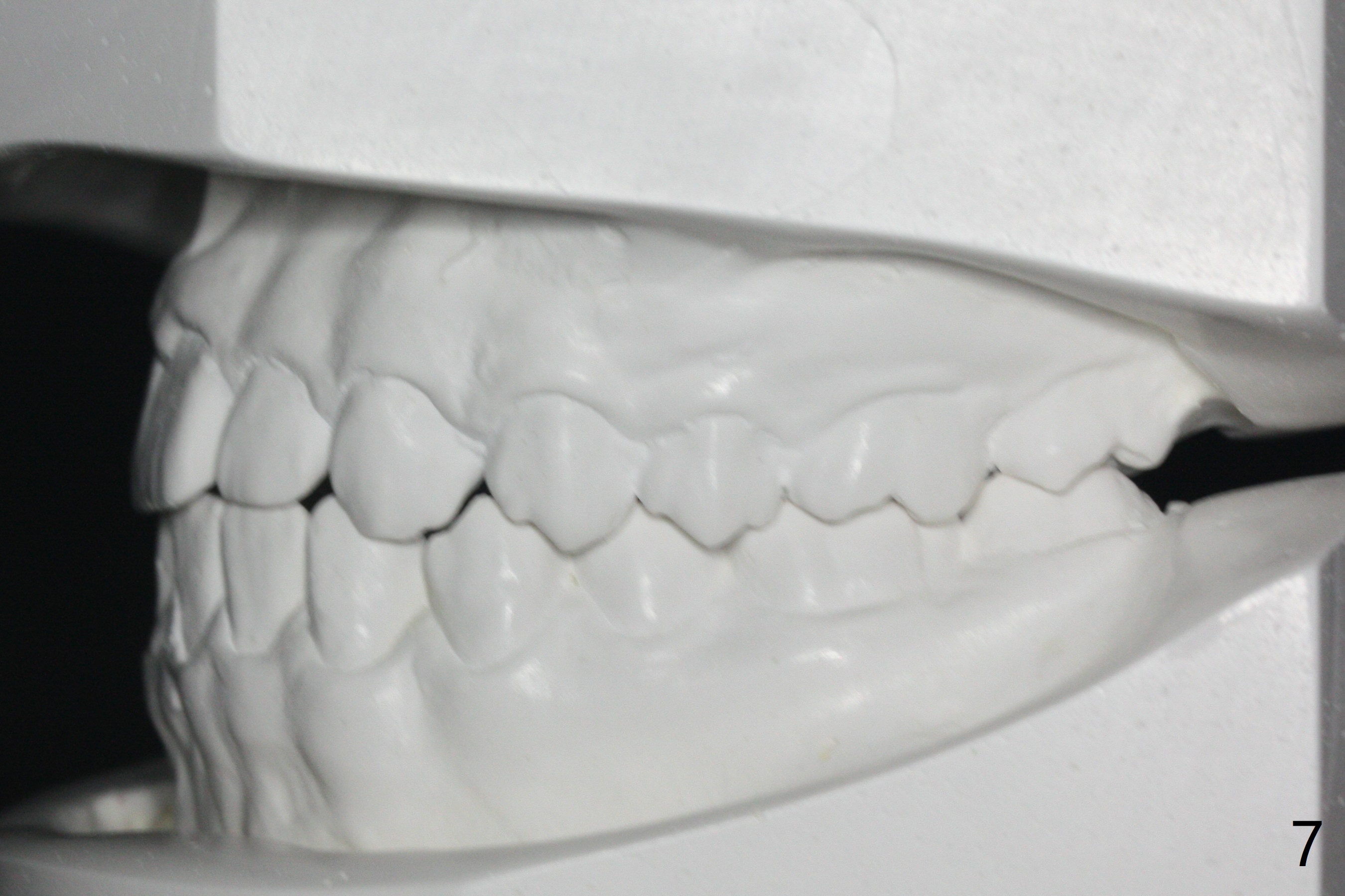 A 14-year-old man requests ortho because of crowding lower anterior and UR missing lateral (Fig.1-4). Open space for the future implant at UR2 will correct upper midline deviation (Fig.1) and change Class II malocclusion to I on the right (Fig.6, as compared to Fig.7). To control UR1,3 root torque, bracketing on these 2 teeth will be intentionally off (Fig.5). The treatment will take ~ 2 years. Prior to implantation at UR2, what type of prosthesis should be made?