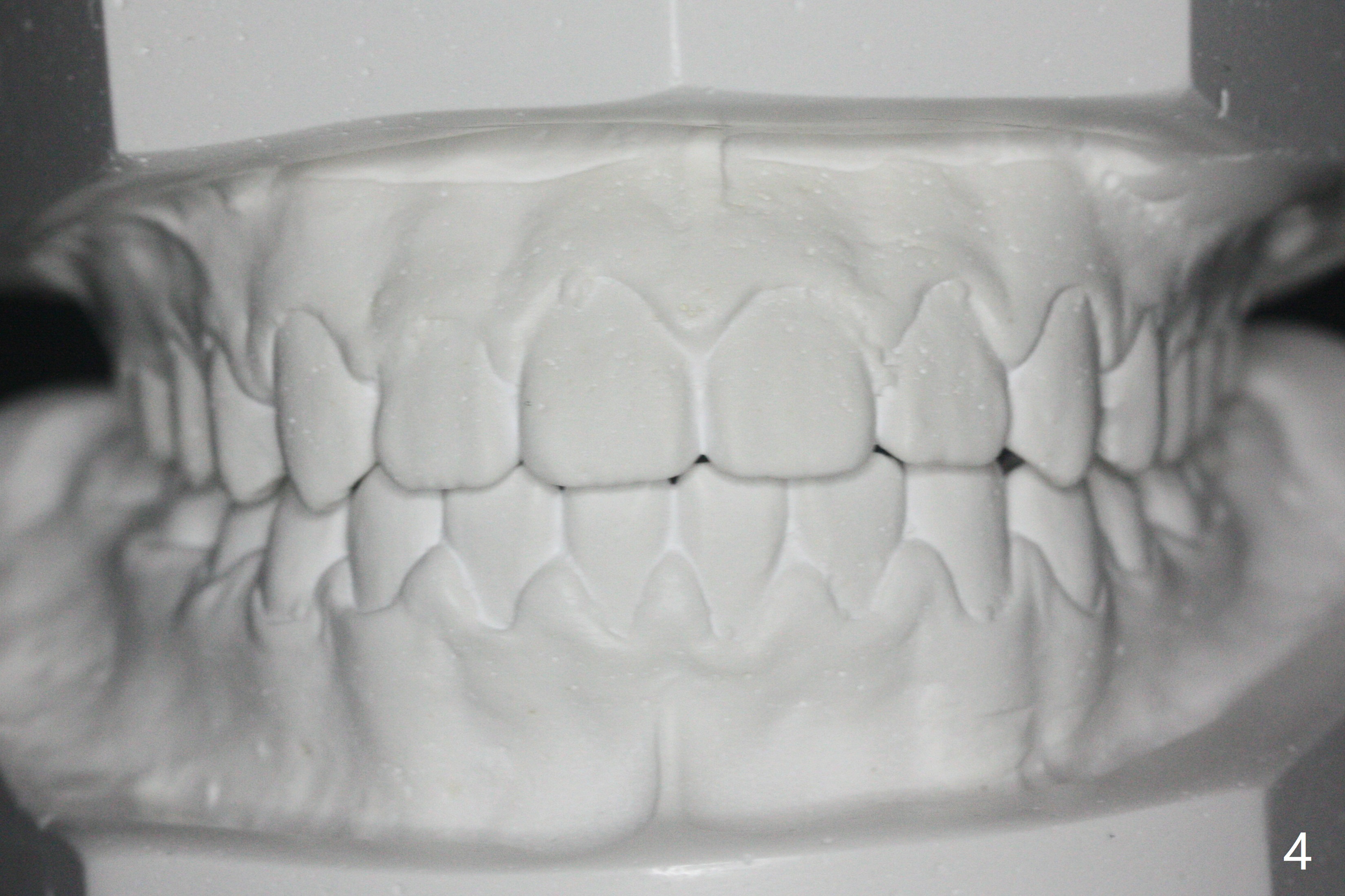 15岁女孩1年1个月完成矫正,临床上美观改善比模型显著,右上4反合纠正,深覆合减轻(比较图一,二)