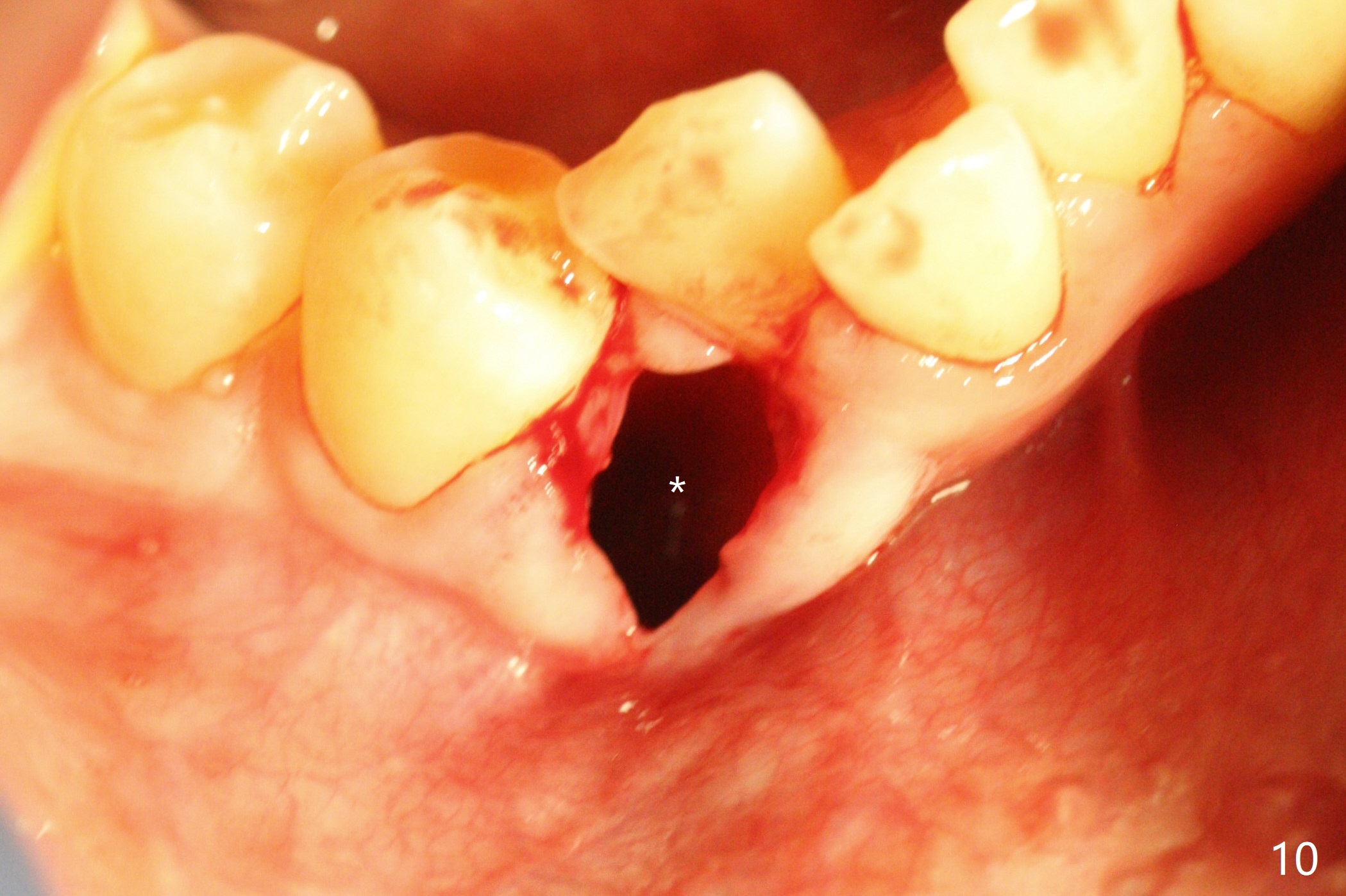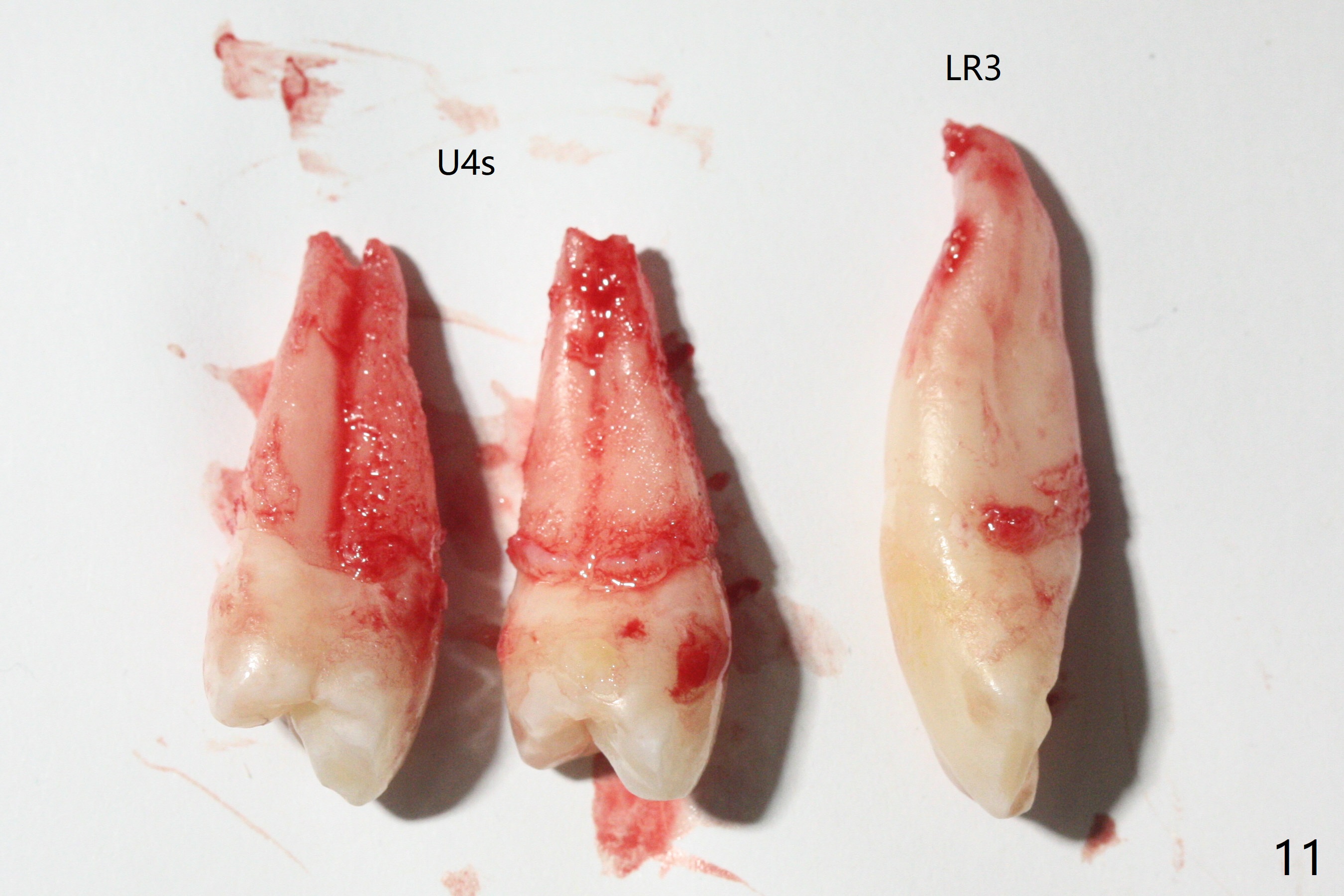 In fact, extraction of LR3 is easier than the other three, because of its labial socket (Fig.10 * (loss of the labial plate), as compared to Fig.9). Nevertheless, the root of LR3 is the longest (Fig.11).