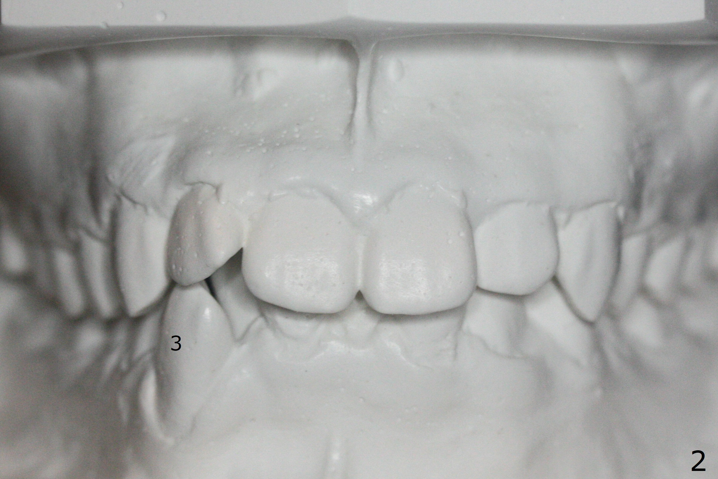 finishes nearly 2 years. The upper anterior teeth should have been moved to the right by controlling posterior anchor well (at UR7 instead of UR6 or use of mini implant). Impression should have been taken when a diastema appears between UR3 and 5 during interdigitation retraction to analyze the problem.