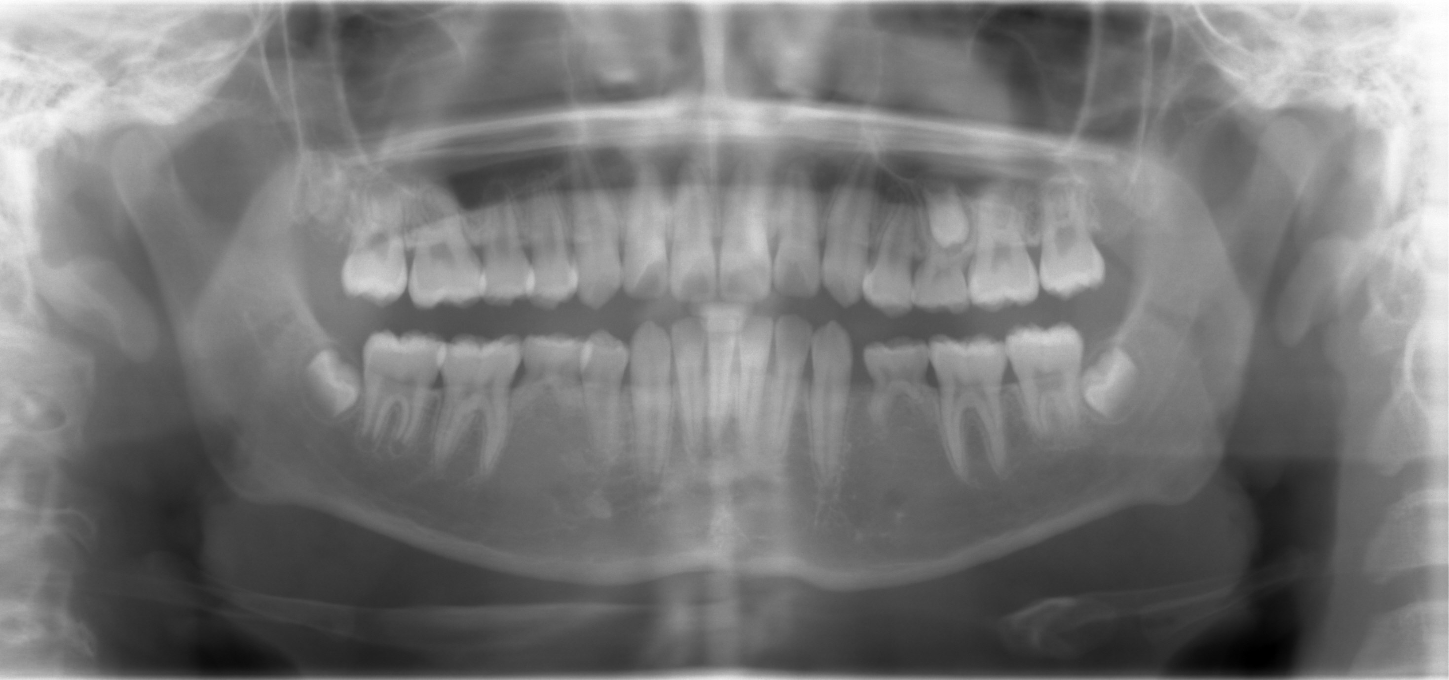 A 13-year-old man returns to clinic 2.5 years after the last one (Fig.1). UL E is extracted with difficulty. It appears to be ankylosed. He returns for follow up today nearly 2 months post extraction. The socket has healed. UL5 (microdontia) seemingly needs to be extruded orthodonti-cally. Is it worthy in doing so? His father having 11 implants (due to trauma and caries instead of congenital nature) is ready for an extra implant if UL5 turns out to be non-salvageable. Can we extract LR5, mesialize LR6,7 using a mini-implant and let LR8 self mesialize?
