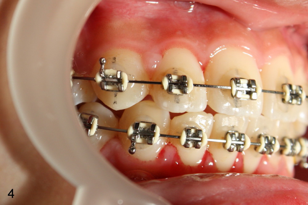 Rebracketing at #6 (Fig.3) leads to resolution of the anterior open bite within a month (Fig.4).