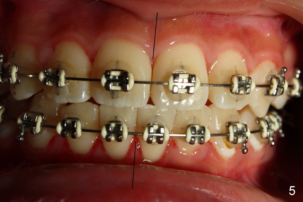 Elastic retraction is instructed to correct dental midline discrepancy (Fig.5).