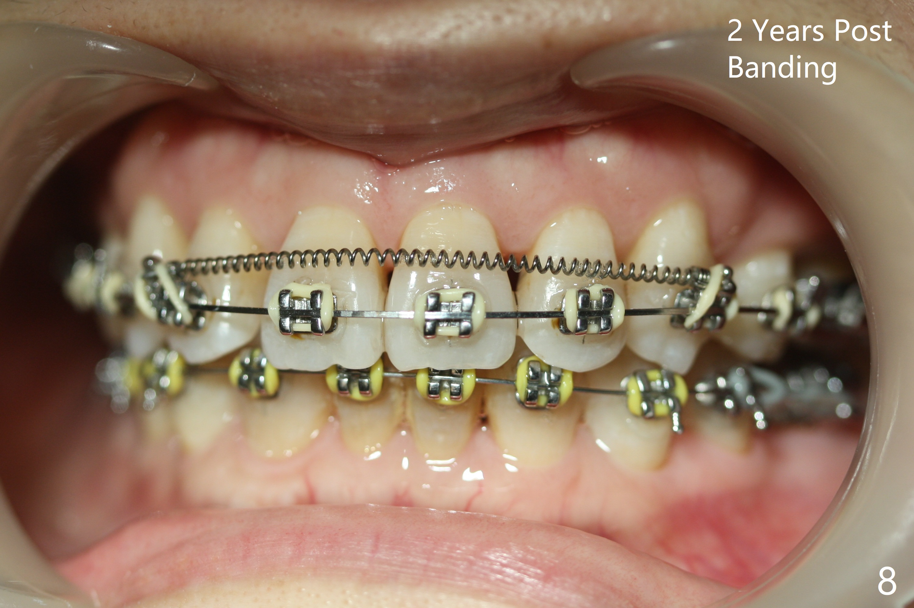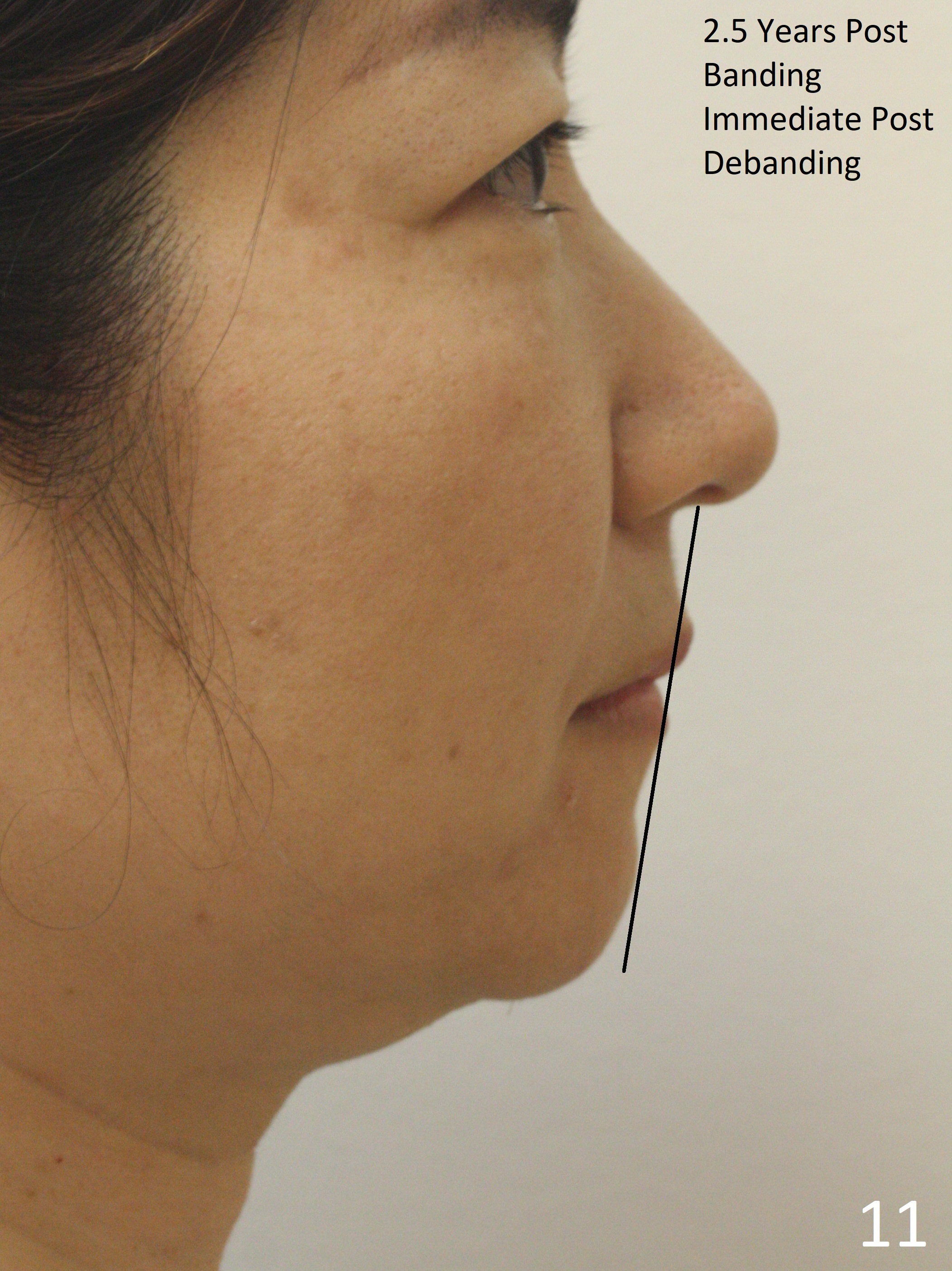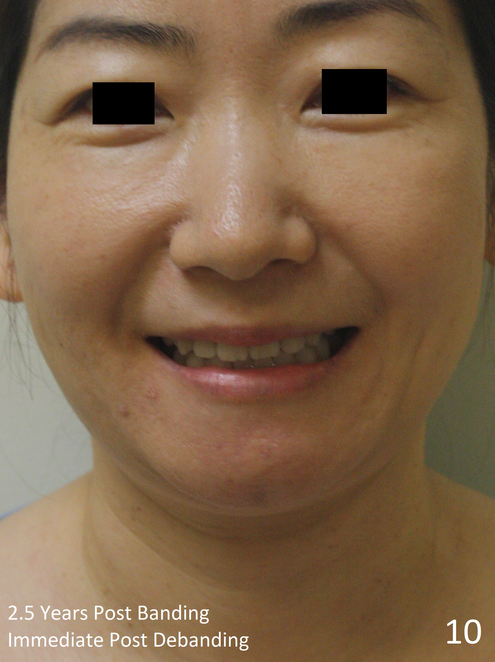 When upper anterior alignment is near normal 10 months post banding, the patient feels that the upper anterior teeth are slightly protrusive (Fig.1,2). It appears that the lower anterior teeth present an obstacle to the upper tooth distalization (Fig.3). After presentation of treatment options (mini implant to intrude the lower anteriors and proximal reduction of the lower teeth), she accepts the latter. Following proximal reduction from LL5 mesial to LR5 mesial, the 1st step is to distalize L4s using L5,6s as anchorage (Fig.4,5; 16x16). If the latter has been achieved when the patient returns, splint L4-6s and retract L3s. When the lower arch diastemata close, the upper dental midline has been moving to the left in the last 13 months (Fig.6-9). Finally crowding and facial profile improve (Fig.10-14). Return to Ortho Cases Xin Wei, DDS, PhD, MS 1st edition 10/12/2017, last revision 07/21/2019