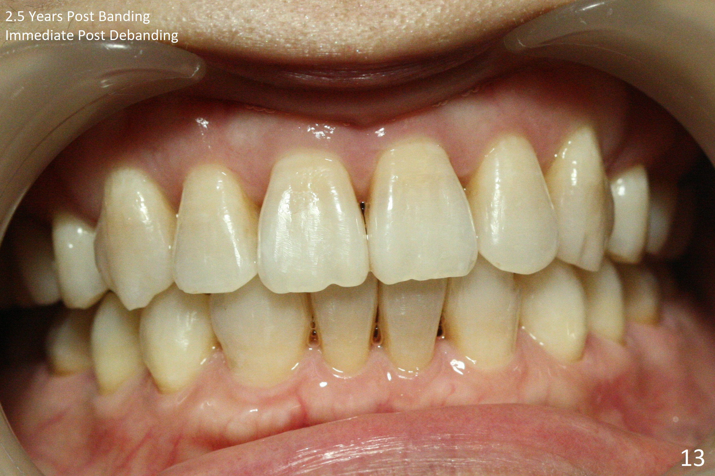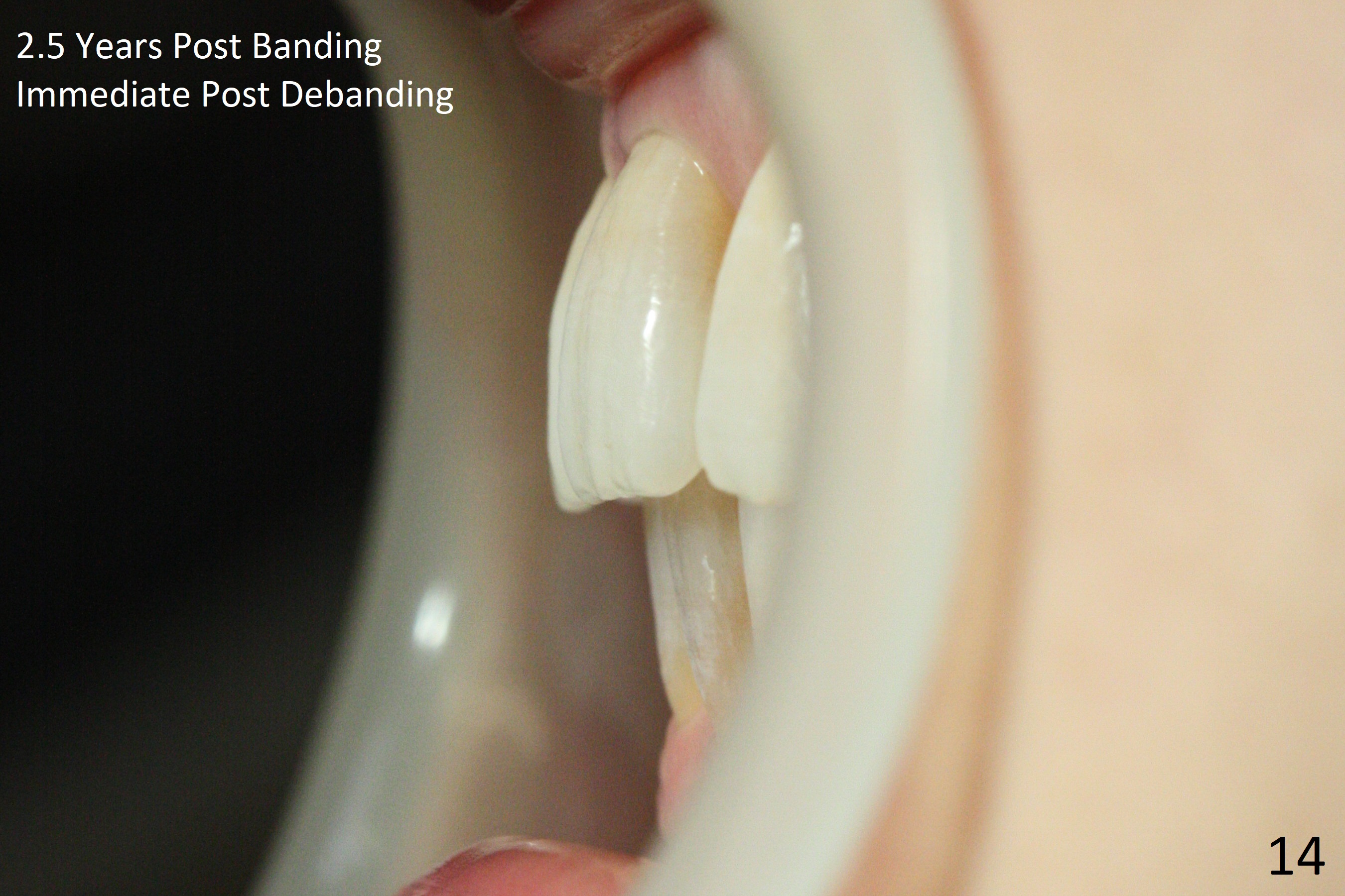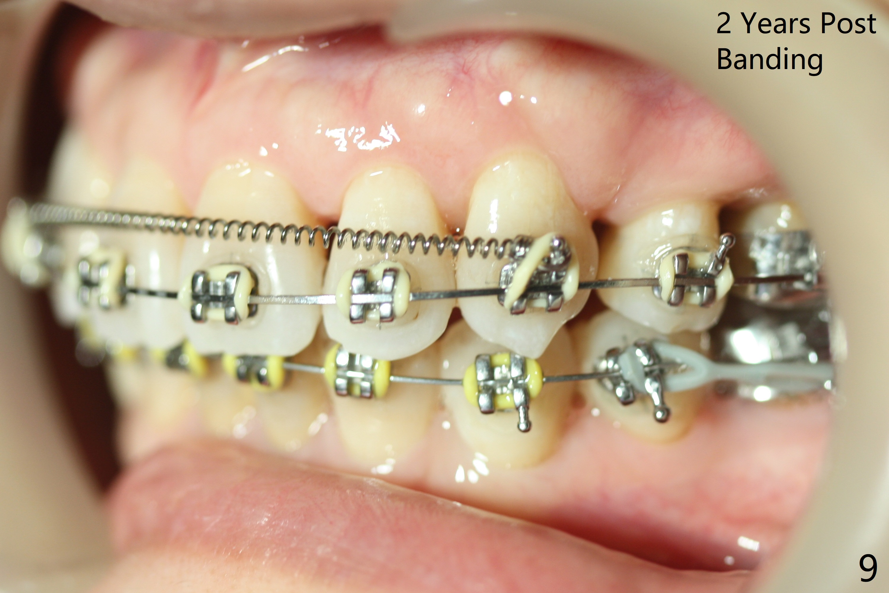 When upper anterior alignment is near normal 10 months post banding, the patient feels that the upper anterior teeth are slightly protrusive (Fig.1,2). It appears that the lower anterior teeth present an obstacle to the upper tooth distalization (Fig.3). After presentation of treatment options (mini implant to intrude the lower anteriors and proximal reduction of the lower teeth), she accepts the latter. Following proximal reduction from LL5 mesial to LR5 mesial, the 1st step is to distalize L4s using L5,6s as anchorage (Fig.4,5; 16x16). If the latter has been achieved when the patient returns, splint L4-6s and retract L3s. When the lower arch diastemata close, the upper dental midline has been moving to the left in the last 13 months (Fig.6-9). Finally crowding and facial profile improve (Fig.10-14). Return to Ortho Cases Xin Wei, DDS, PhD, MS 1st edition 10/12/2017, last revision 07/21/2019