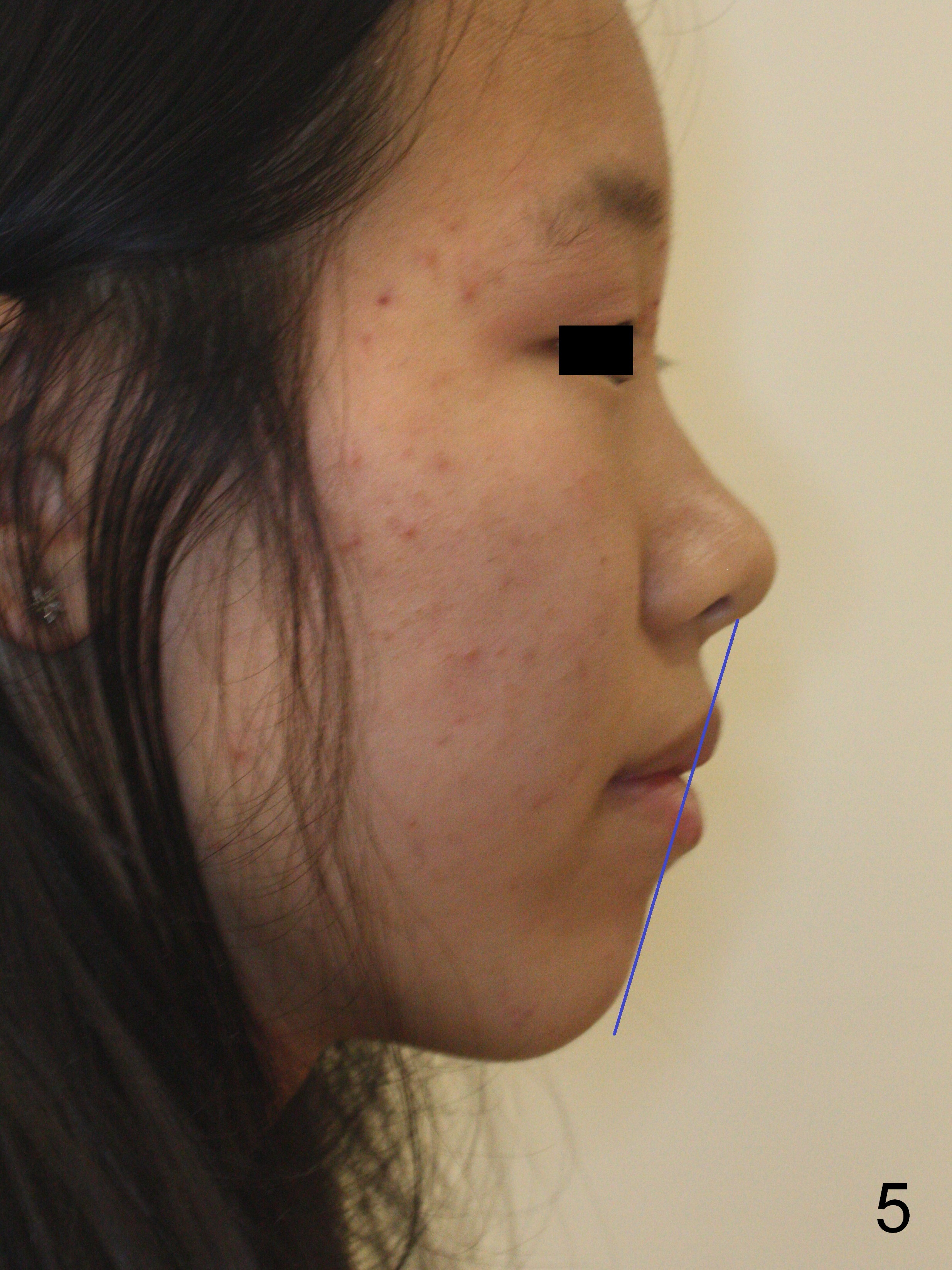Microdontia at U2s contributes to Class II malposition of U3s (Fig.7,9). No brackets are placed in U2s initially so that open coil springs can be placed between U2 and 3 to increase space. Composite veneers are to be fabricated near the end of orthodontic treatment, whereas porcelain veneers are going to be placed when she grows beyond puberty. Constantly encourage the patient for better oral hygiene before, during and after orthodontic treatment (Fig.8,9). Without extraction, the facial profile remains convex postop.
