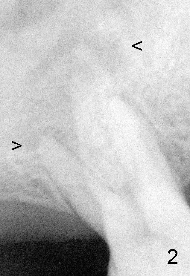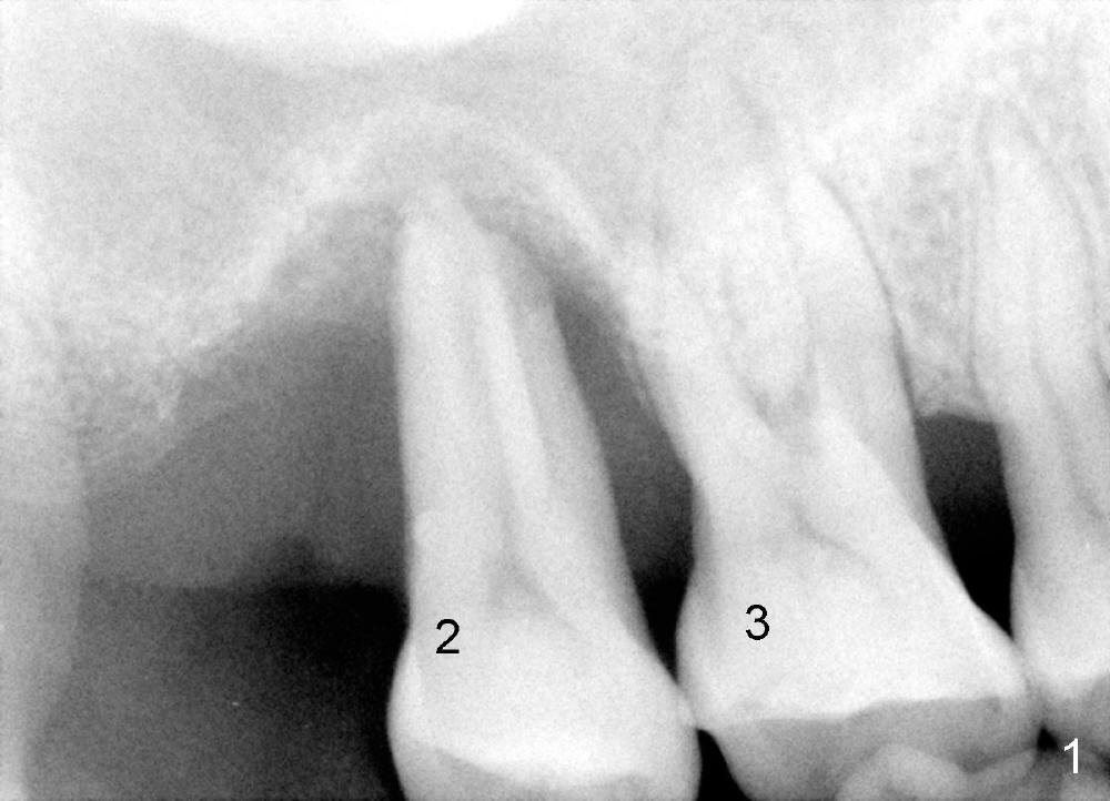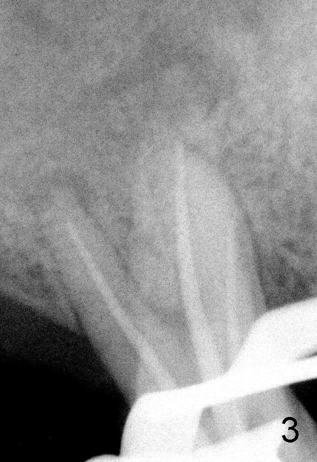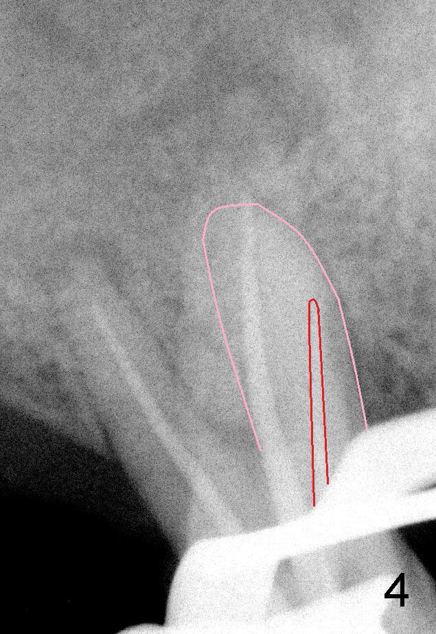 50岁男士有严重牙周炎(图一(2009年拍摄):二号牙(左上七)最终拔除(与图二对比)),最近三号牙(左上六)冷热痛,而且不能咬东西,三号牙多处牙周袋深,根尖片显示远中颊侧和腭侧根尖阴影(图二箭头),初步诊断:牙周牙髓综合症,需要根管治疗以及牙周手术,还可能保留不了。开髓表明活髓,近中颊侧和远中颊侧(DB)根管口很接近(参考图一图二),扩大(30/.04)后并表现不出来(图五至图七),开始近中根管口好像比较接近腭侧根管口,以为是MB2,使用Piezo超声波/diamond tip在MB(图六*)颊侧和近中寻找另外一个根管(箭头),但不成功。腭侧根管扩大到40/.06,匆匆忙忙插入主牙胶尖,拍摄根尖片(图三),显示远中颊侧以及腭侧(P)牙胶尖在相应牙根正中,但是近中颊侧并不是这样(图四=图三+MB牙根和牙胶尖轮廓),这说明还存在另外一个根管。经过再次合适扩大(crown down),腭侧牙胶尖进入更深地方(临床上),这时病人已经坐立不安了,paper points吸干根管后,拍摄图五至图七,暂封。由于病人还缺失好几颗牙齿,劝他去拍摄CT。今天术后第五六天,打电话给他,他很高兴,说冷热痛消失,牙齿也牢靠多了,但是还没去拍摄CT。下周三他回来完成根管治疗。