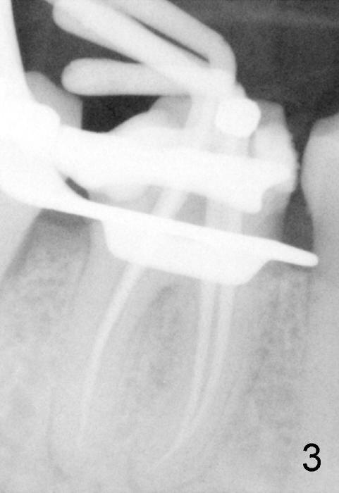 可能再牵强大家一次,她牙周病与根裂容易诊断有关。她再次接受深洗,由于经济问题,不肯拔牙。自从根裂诊断后,她认真搞好口腔卫生,说牙痛好多了,作为医生,这点很难理解。不过她总有一天需要拔牙,植牙。好在她已经戒烟了,为植牙奠定基础。