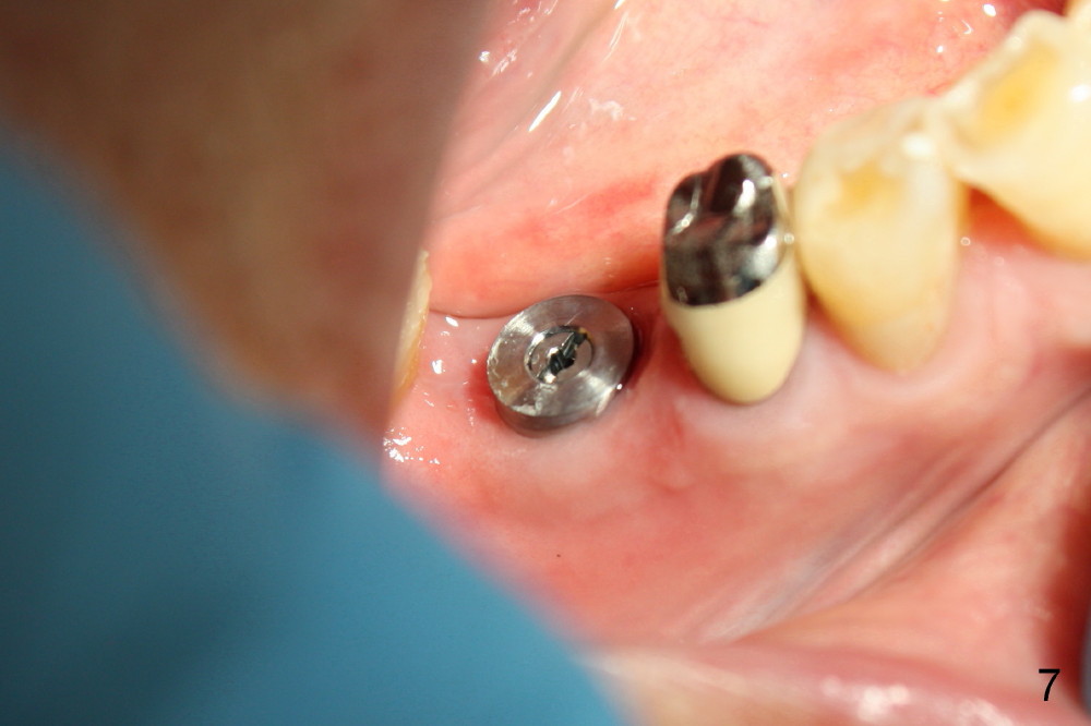 图七:掀开婚纱(periodontal dressing),又老又穷单身汉热泪盈眶:新娘(植牙以及周围牙龈)又白(干净,没有菌斑)又漂亮(没有炎症),福从天降。回原文