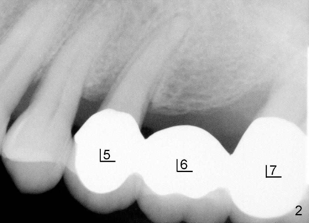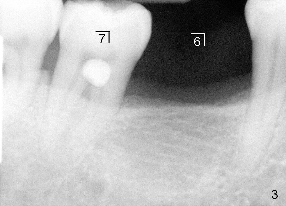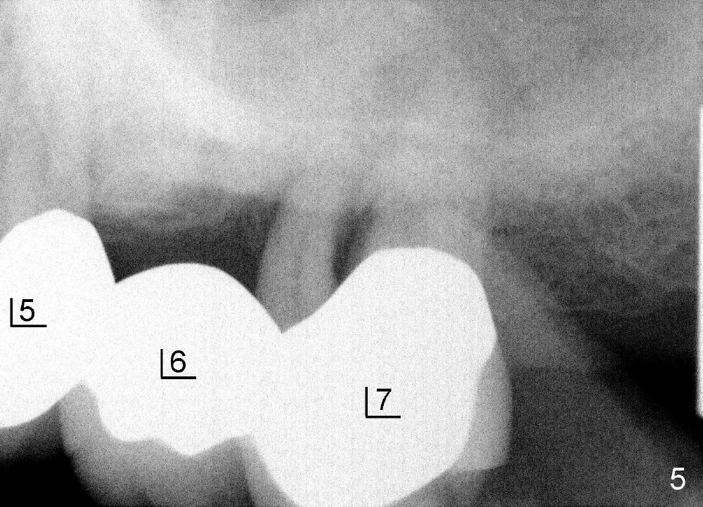 如果时间允许,我们可能同时在左上六号牙处植牙,骨头高度好像不乐观(图五,六),积极人在图二找骨头,估计可以植入六乘十一或者十四毫米植牙。