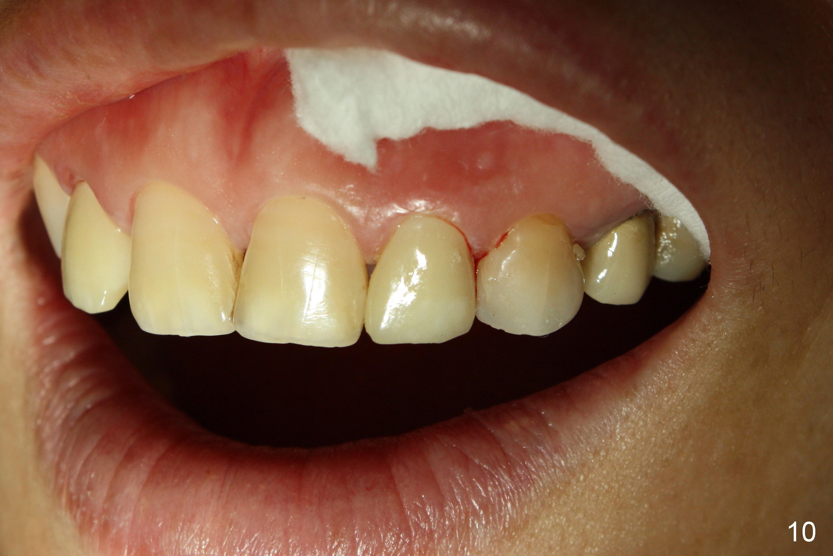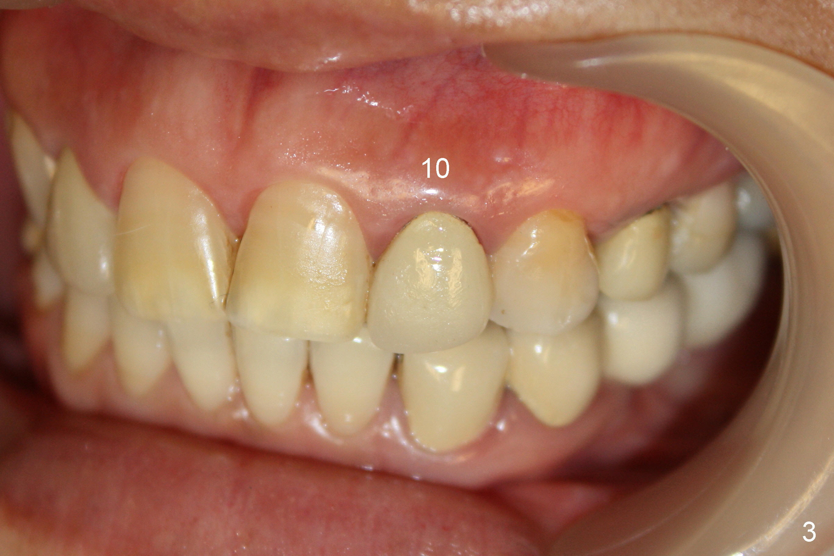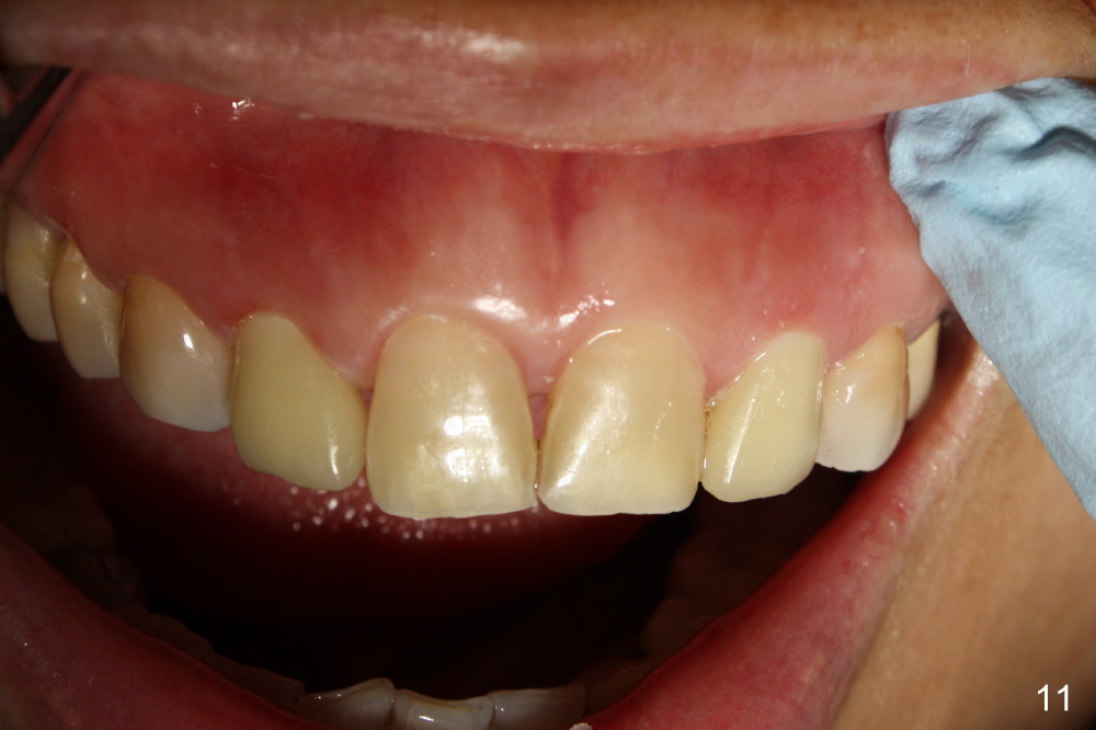 而十号牙临时牙冠(图七),最终牙冠(图十)都很顺利,最后病人满意离去(图十一)。