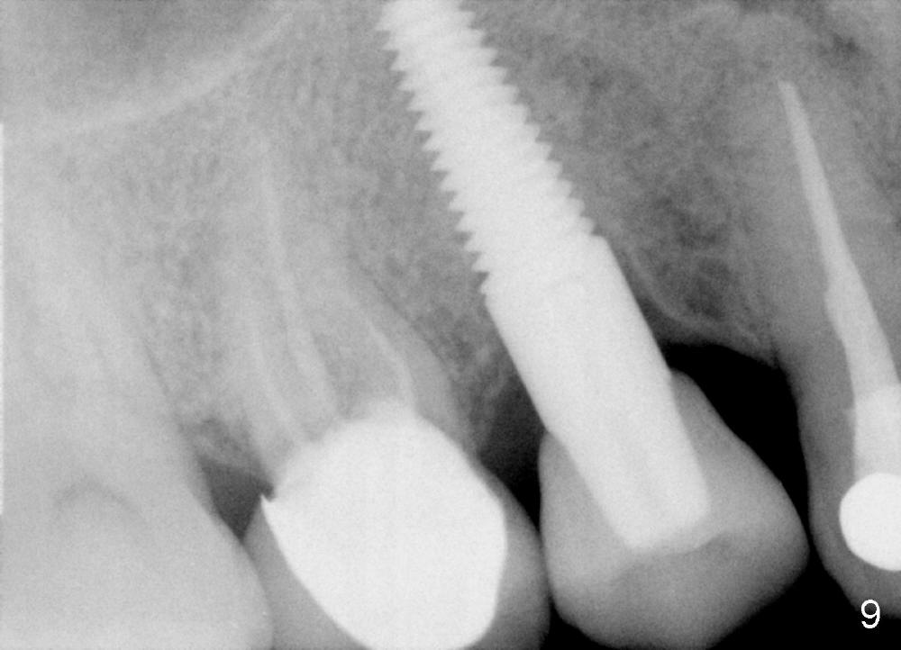 Fig.9 is taken 19 months post cementation of the implant crown. There is no bone resorption around the implant.