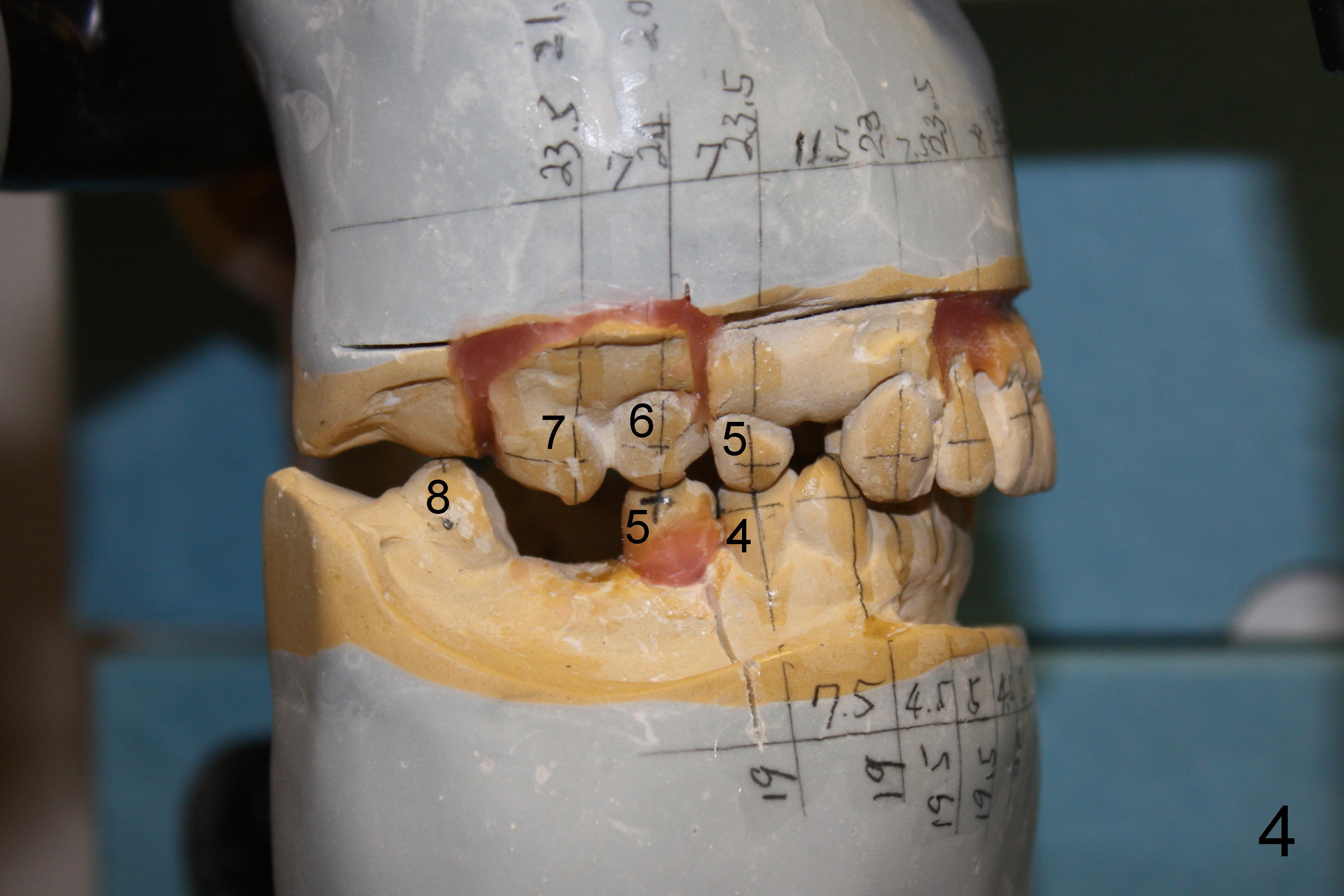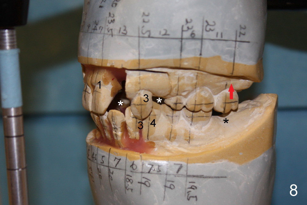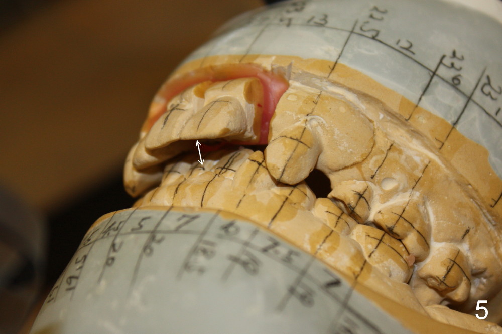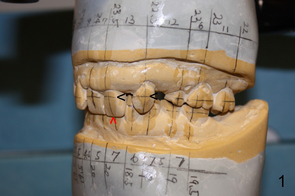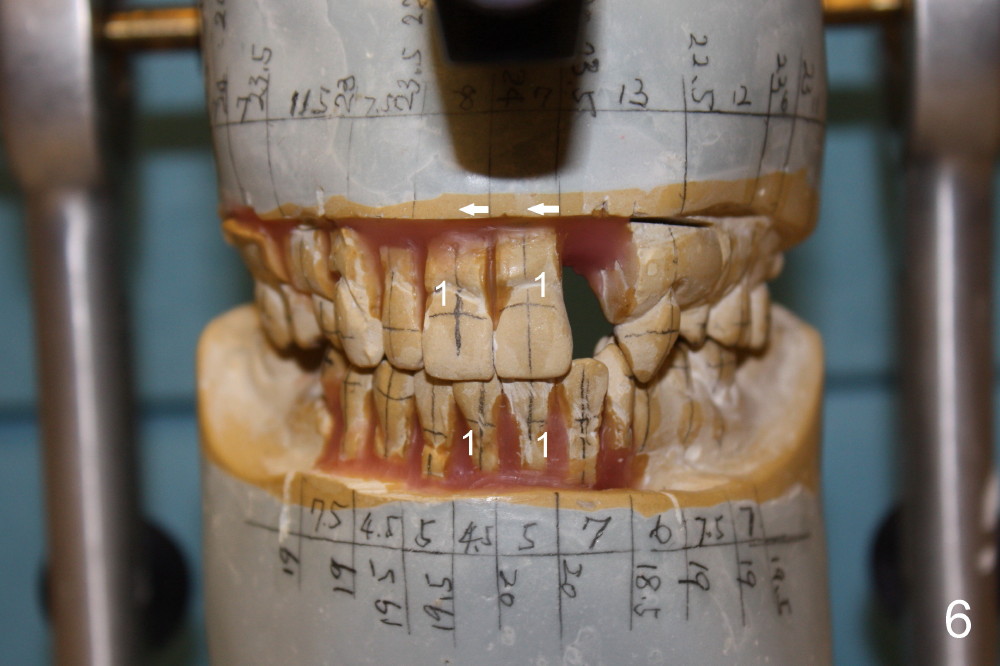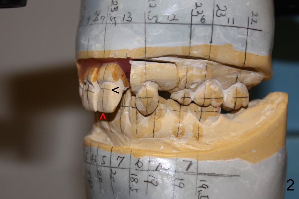 Fig.1 is the lateral view of preop model. Red arrow indicates supraeruption of the central incisor.