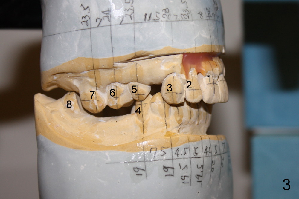 Fig.3 is the lateral view of the right posterior occlusion: UR6,7 supraeruption.