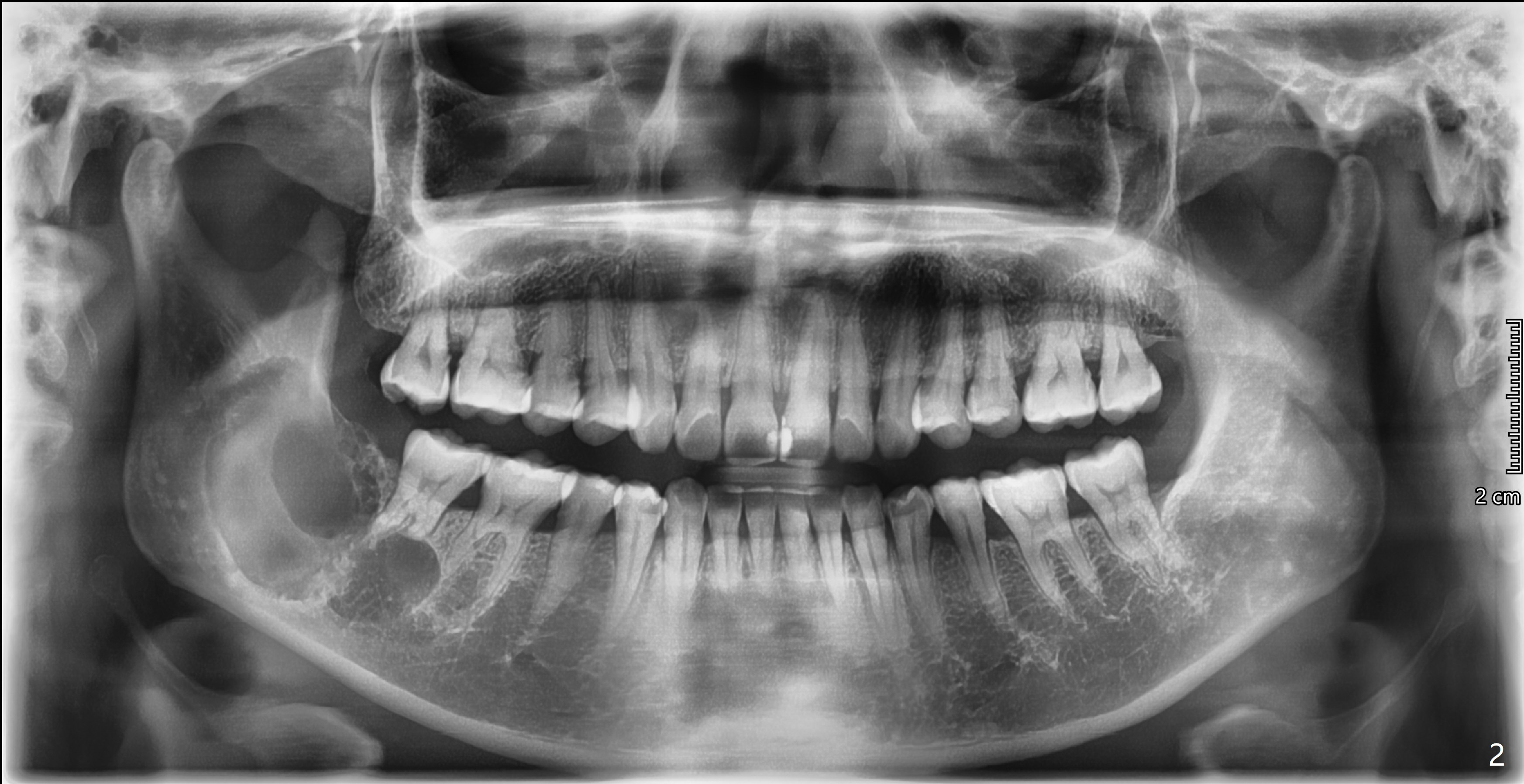 我在日本大学口外20年 清楚他们的治疗方法 这病例还有舌侧骨壁吸收? 向升枝上方浸润(?) 边界不清 也是造釉细胞瘤的特征 记得国内
