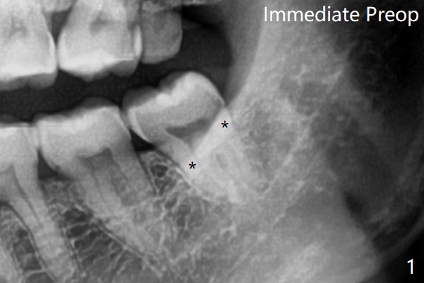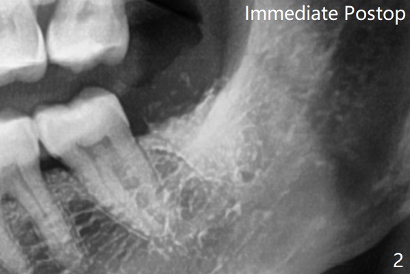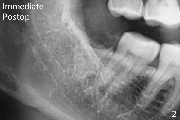 术前外斜脊(图一:*)存在,术后即刻没有消失,放置0.5毫升骨水泥(图二)。