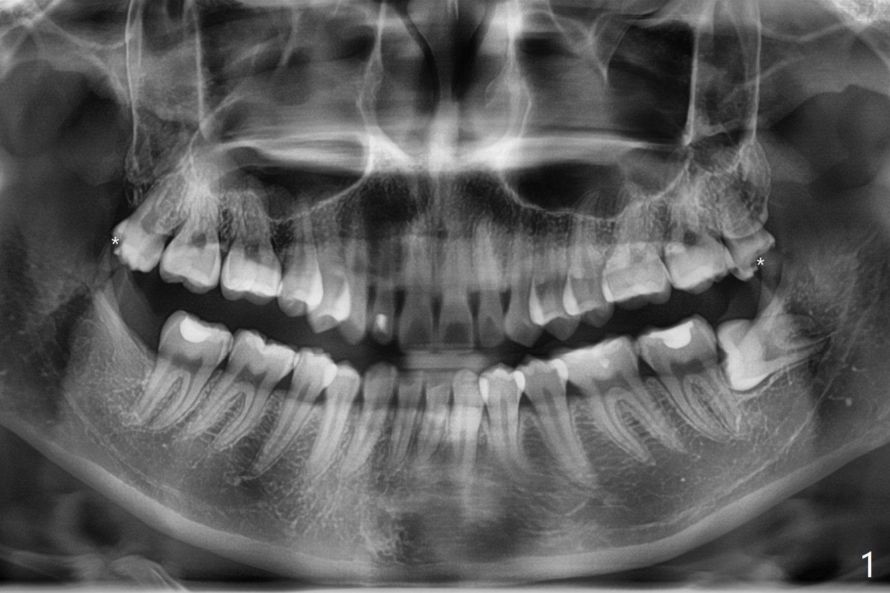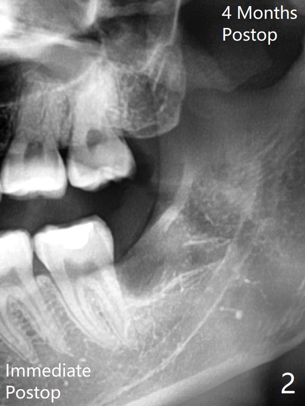 23岁女右上,左上8蛀牙(图一),左上拔除4个月后,回来拔除左下8(图二),为了防止干槽症,放置胶原塞。