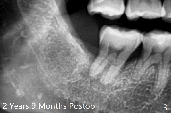 There is bone regeneration at #32 socket 2 years 9 months postop (Fig.3).
