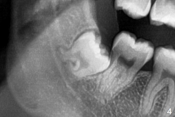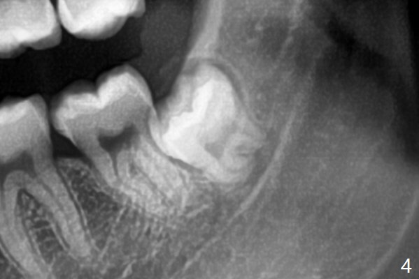 Since the third molars may overlap with the second ones, oblique incision (red line in Fig.4') will be mesial. Place Collagen and Osteogen plugs in the #32 and 17 sockets, respectively (Fig.4': C, O). As the roots are short and bone formation distal to the 2nd molars is critical, the plugs will be placed horizontally and coronally (Fig.4' white outline). No dovetail is needed.