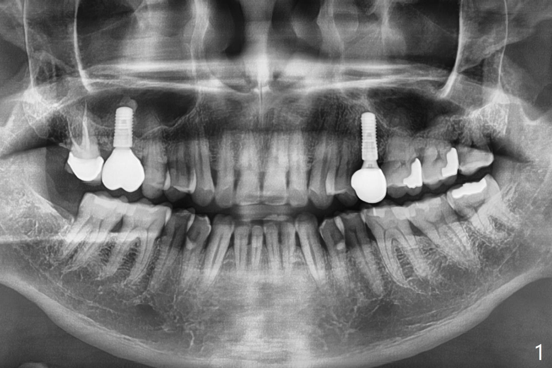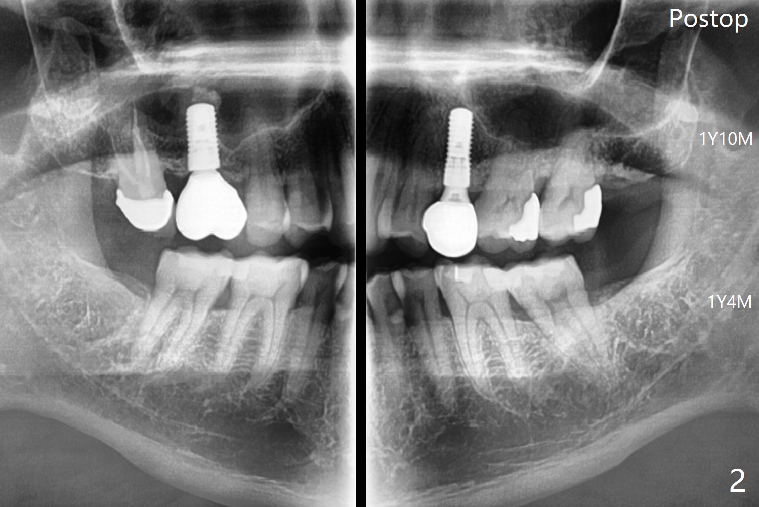 61岁男在拔除左上智齿后5个月拔除左下智齿(图一,最有可能使用Osteogen Plug),术后愈合正常(图二)。