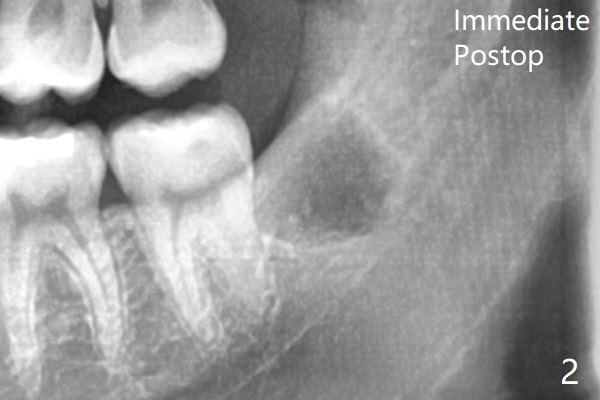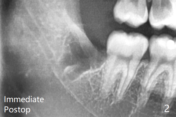 To prevent dry socket, collagen plug is placed at #17 and 32 post extraction (Fig.2).